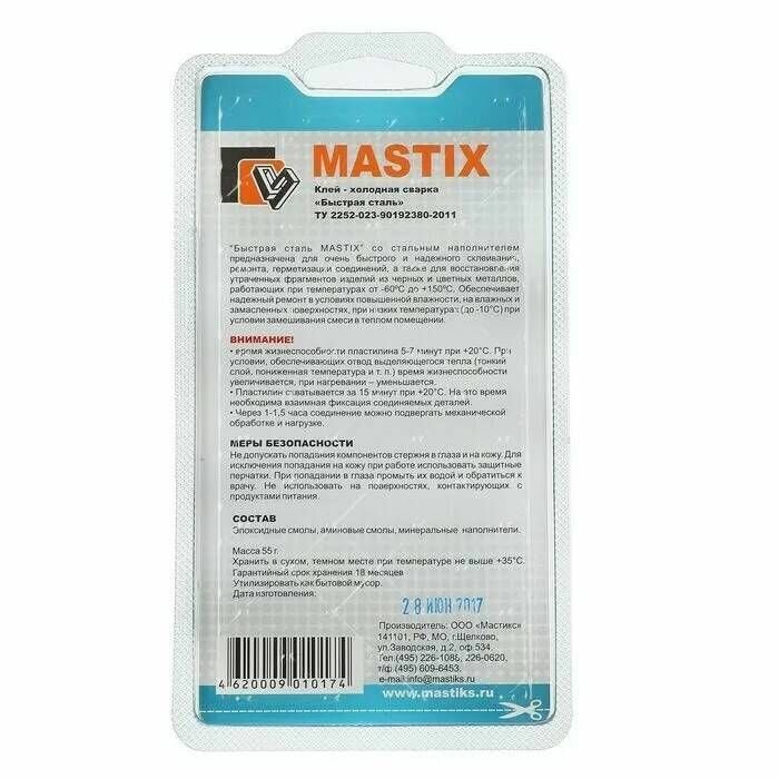 MASTIX Клей холодная сварка Быстрая сталь, 55г, 12 шт информация: