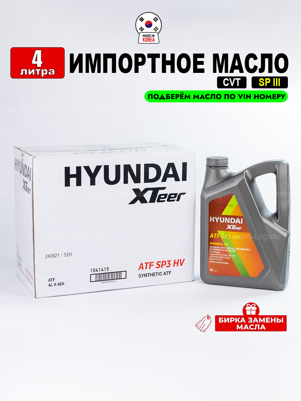 Отзывы на Масло трансмиссионное HYUNDAI XTeer ATF SP-III HV (Корея), 4л + бирка, жидкость для коробки передач 1041415