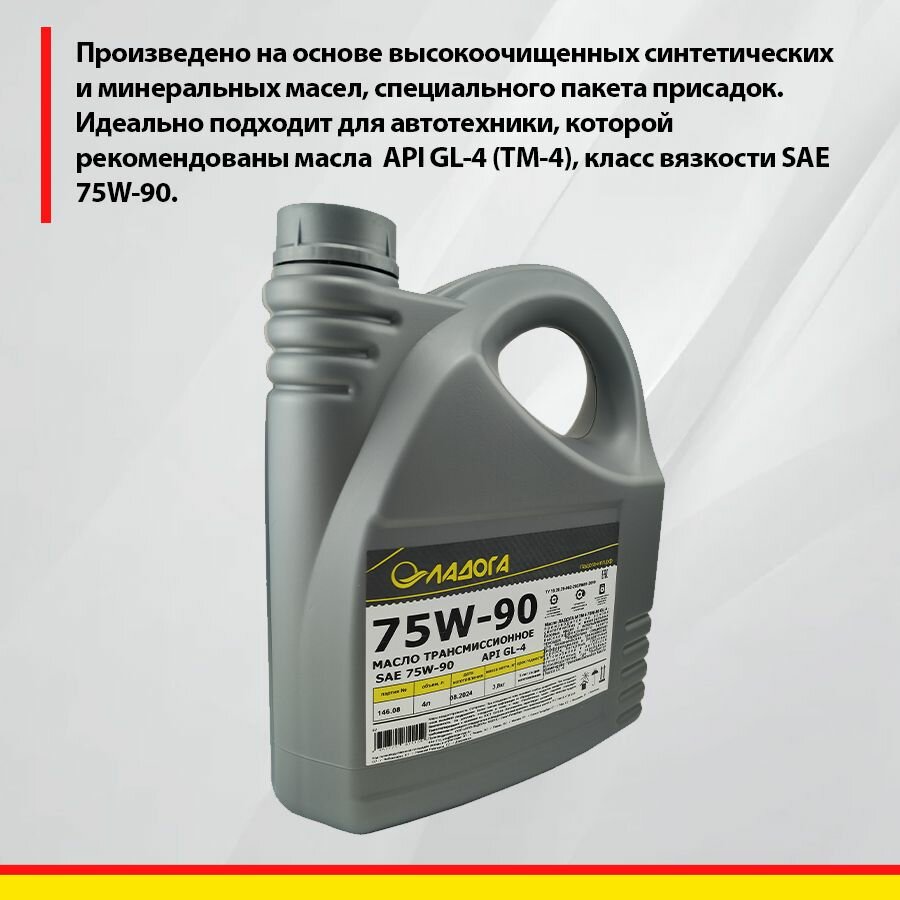 Масло трансмиссионное ладога М ТМ 4 SAE 75W-90 GL-4 4л информация:
