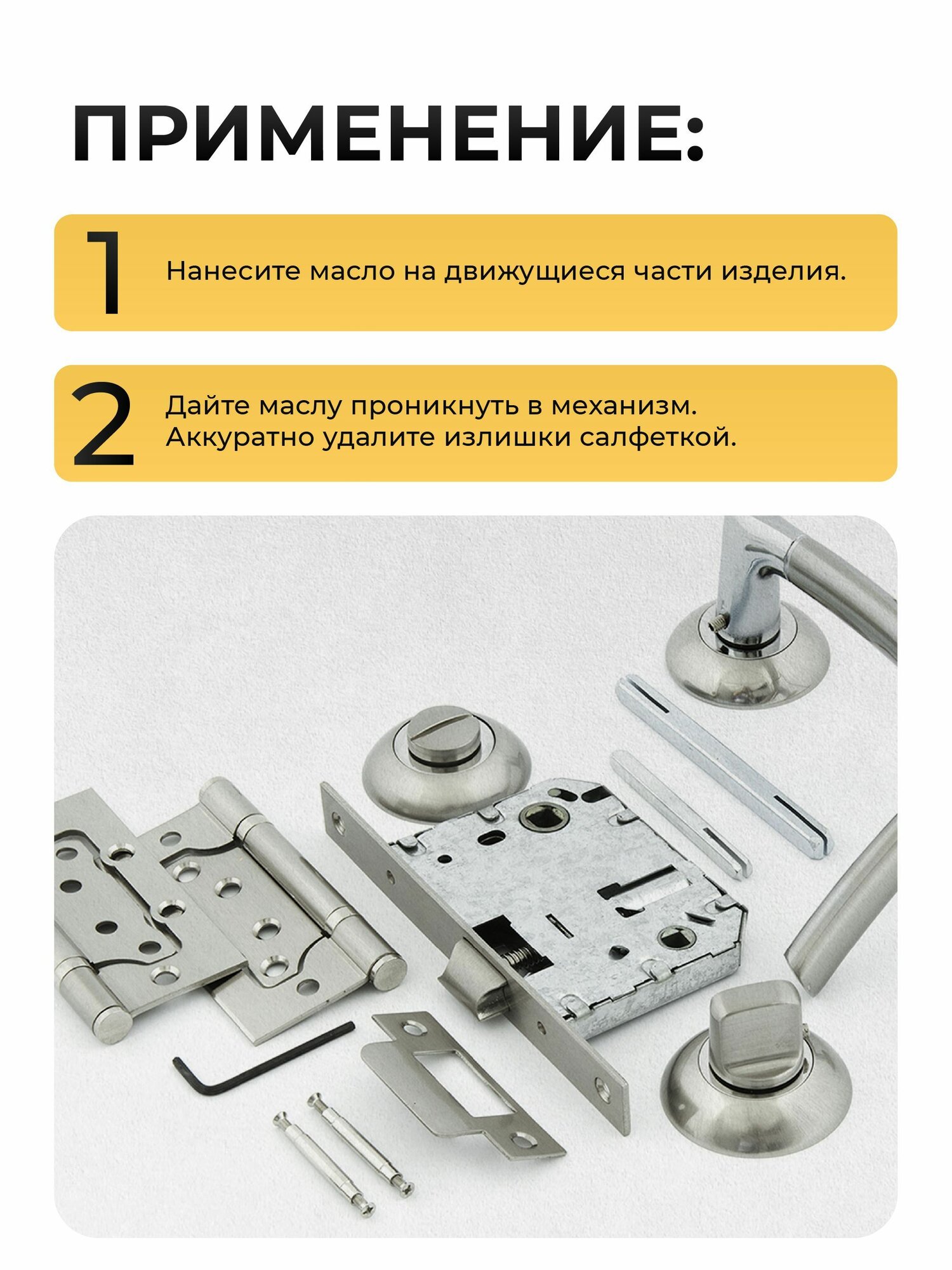 | Область применения | замки и петли |