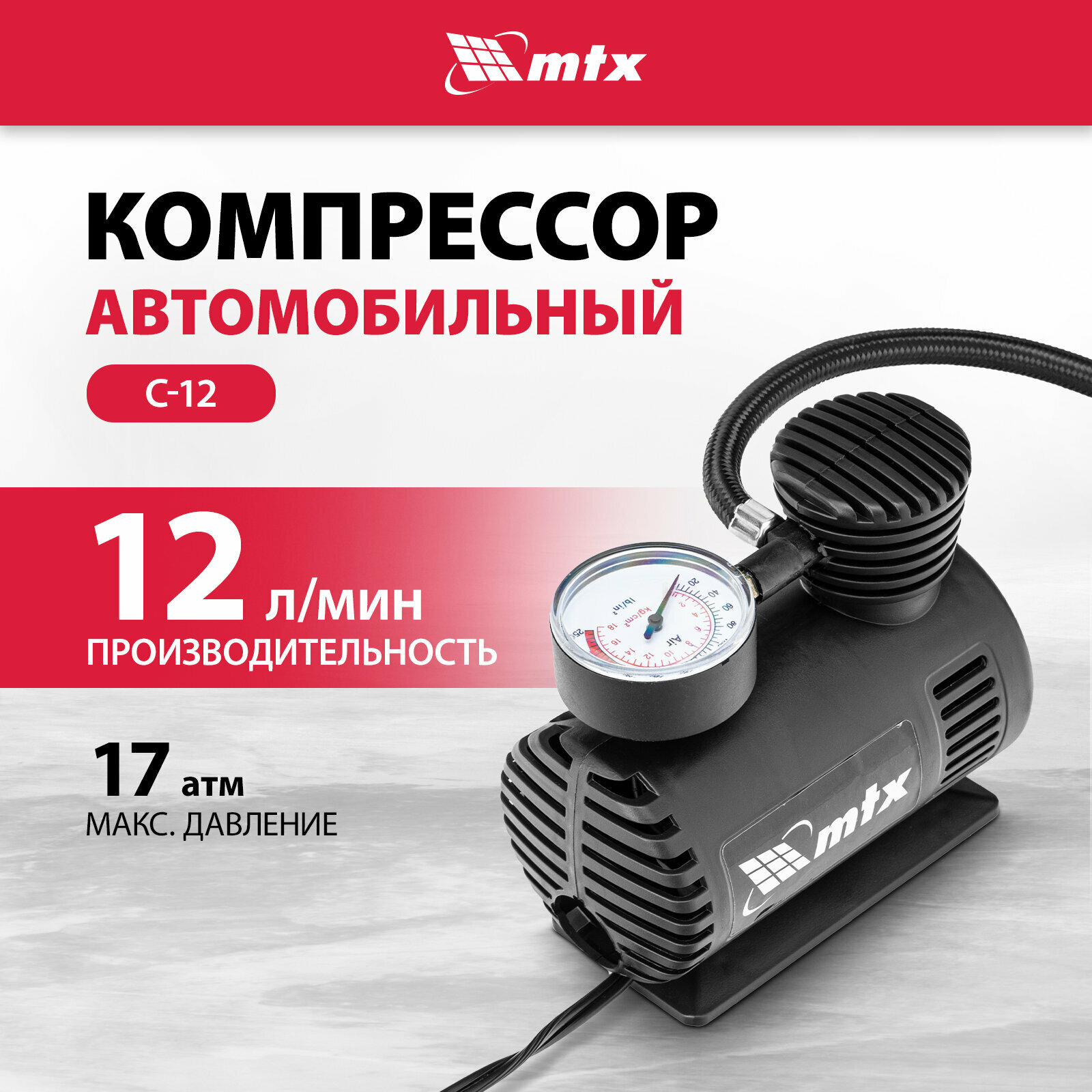 Компрессор автомобильный MTX, С-12, 12 В, 17 атм, 12 л/мин, 58100 информация: