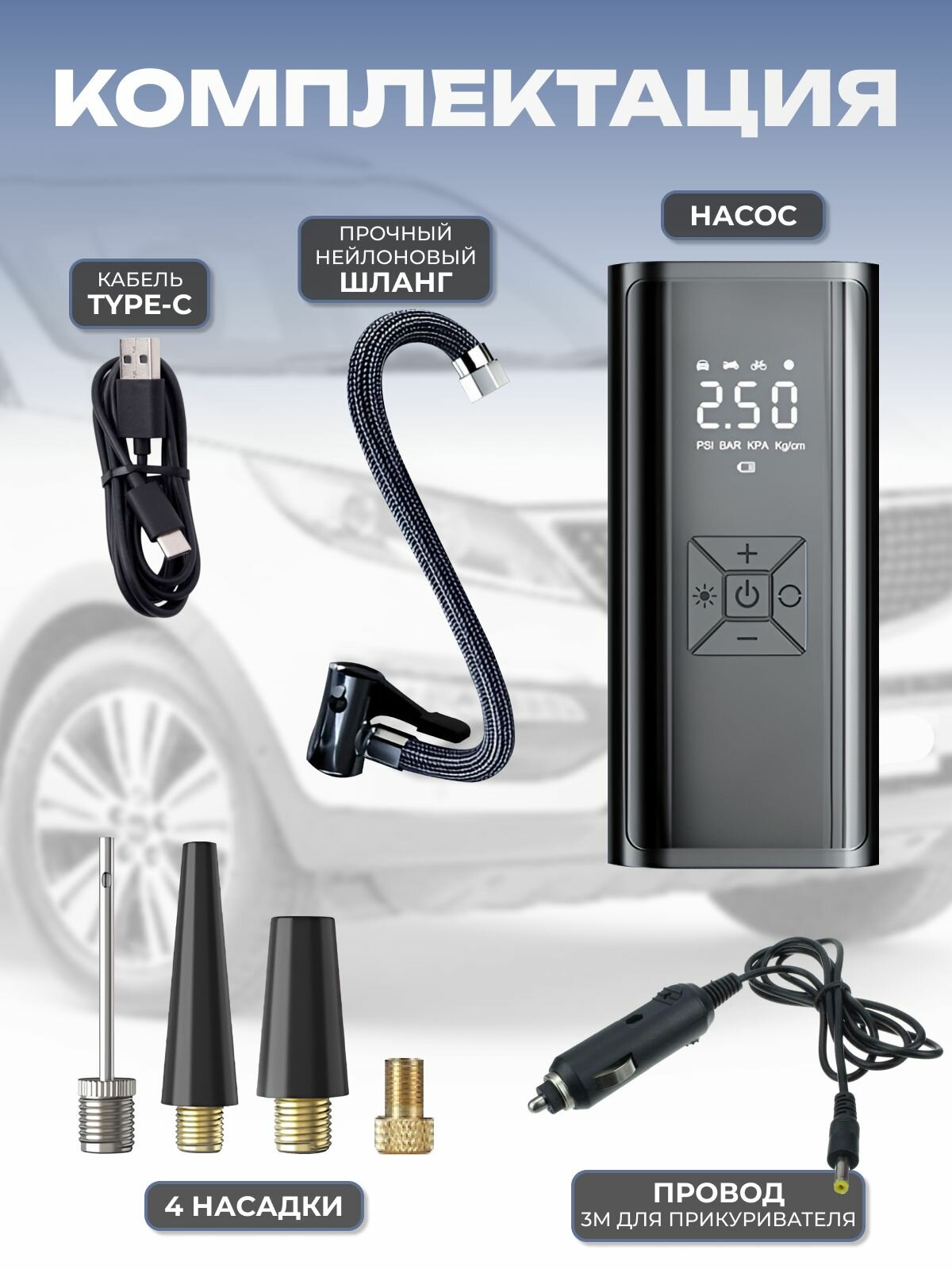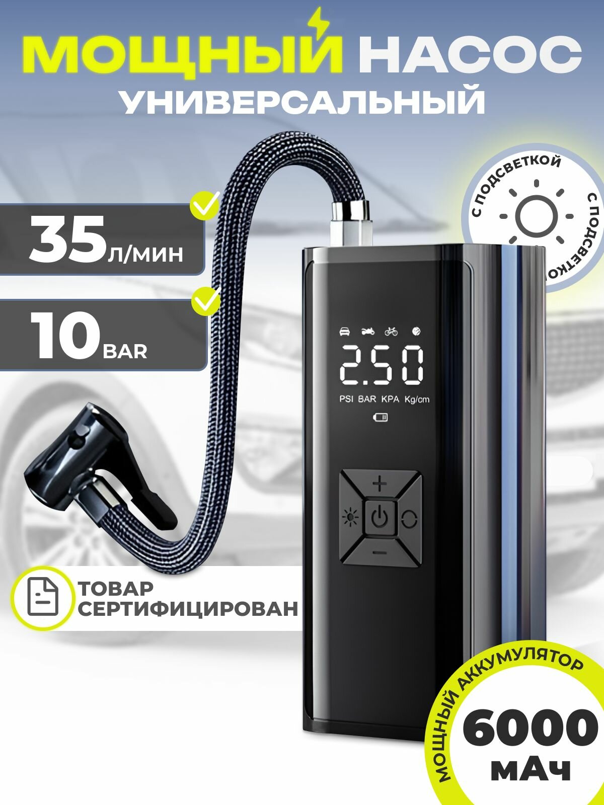 Компрессор автомобильный беспроводной аккумуляторный, насос, 12Вт, 10 BAR, 35 л/мин информация: