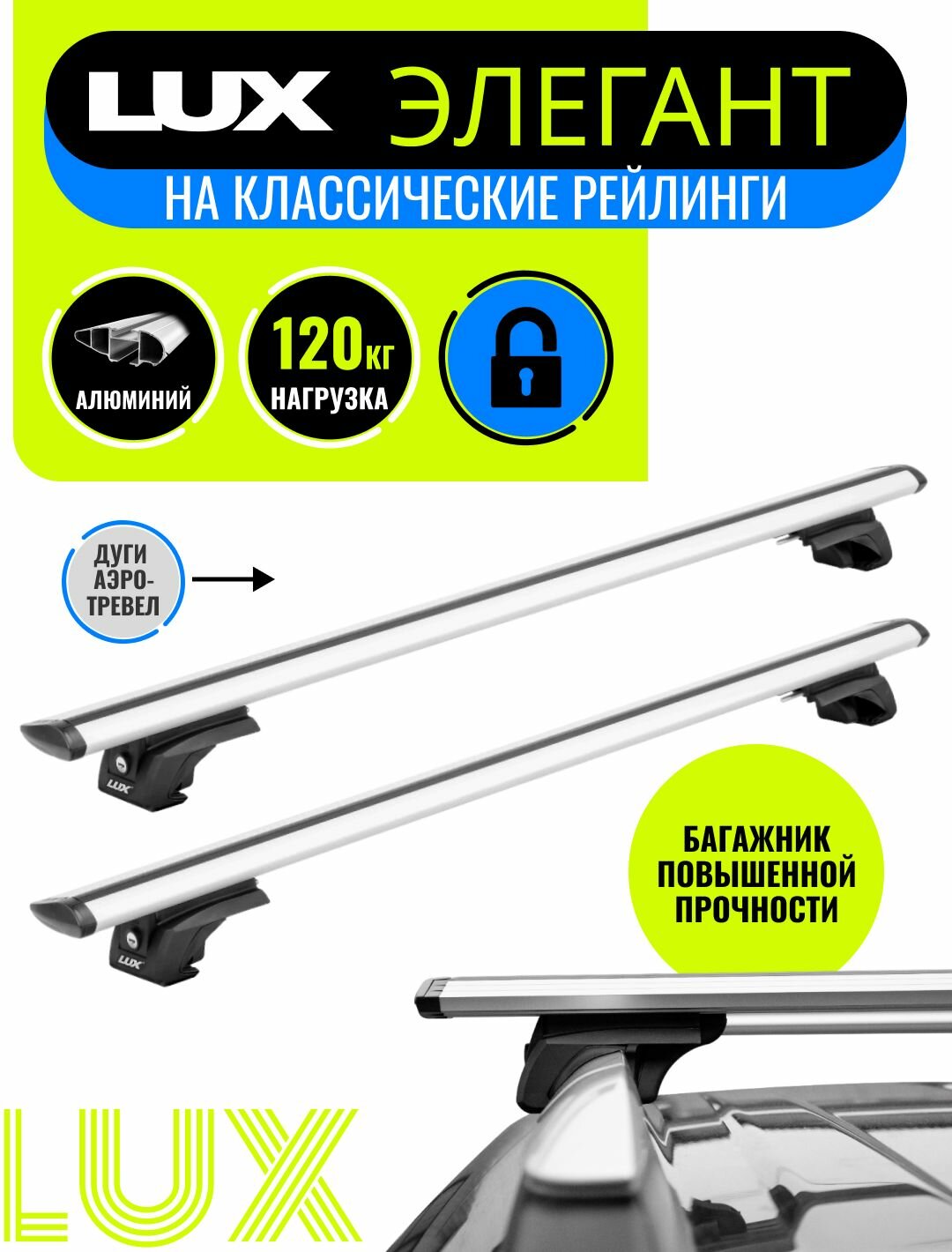 Багажник на крышу LUX элегант с замками дуги аэро-тревел (82мм) 1,2м на Крайслер Вояджер/Гранд Вояджер 3 1996-2000, арт:21253-14