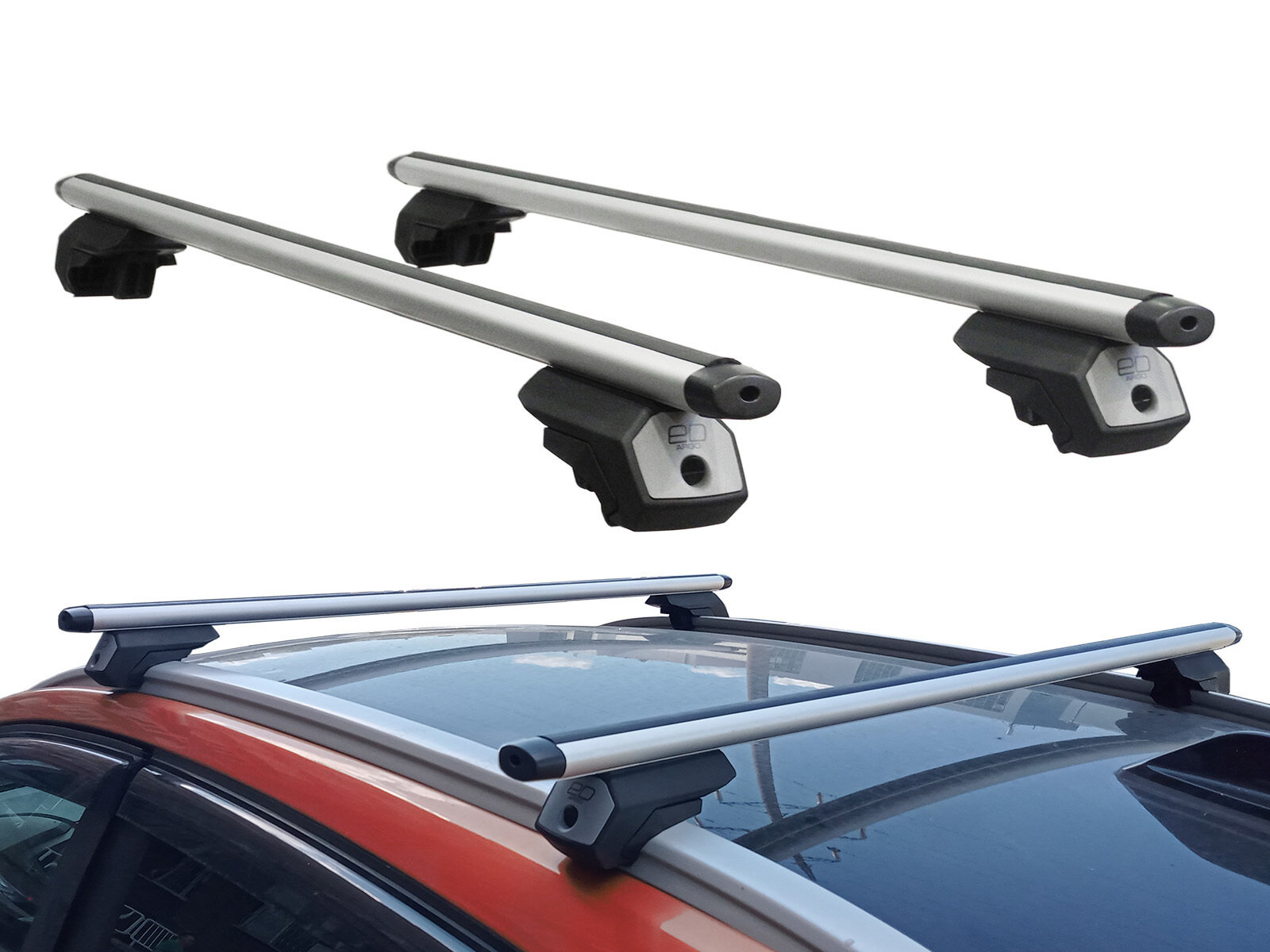 Багажник на крышу Омода С5 (Omoda C5, 2023-.), ED Tana, с замком, серебристые крыловидные дуги