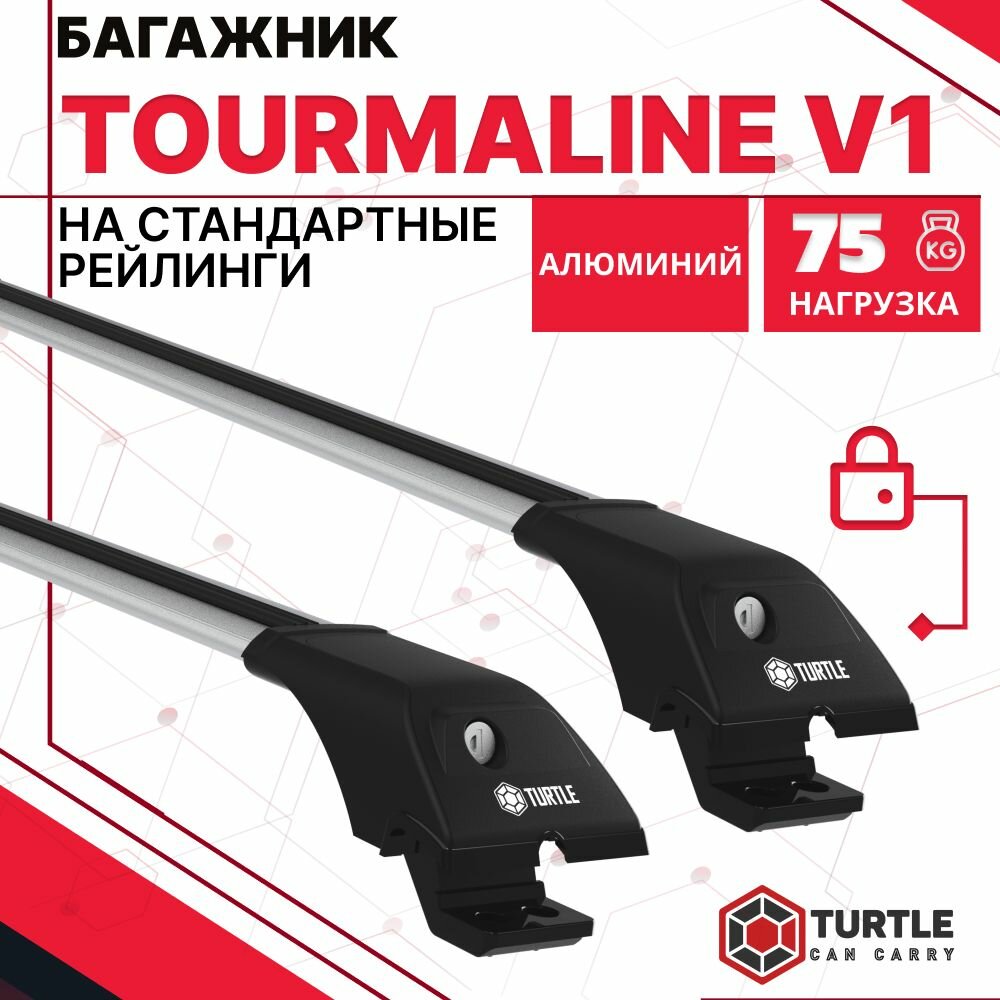 Багажник Turtle Tourmaline V1 для Mitsubishi Outlander / Митсубиcи Аутлендер Джип 5 дв. 2005-2012 : на рейлинги - Аэродинамические поперечины - с замком.