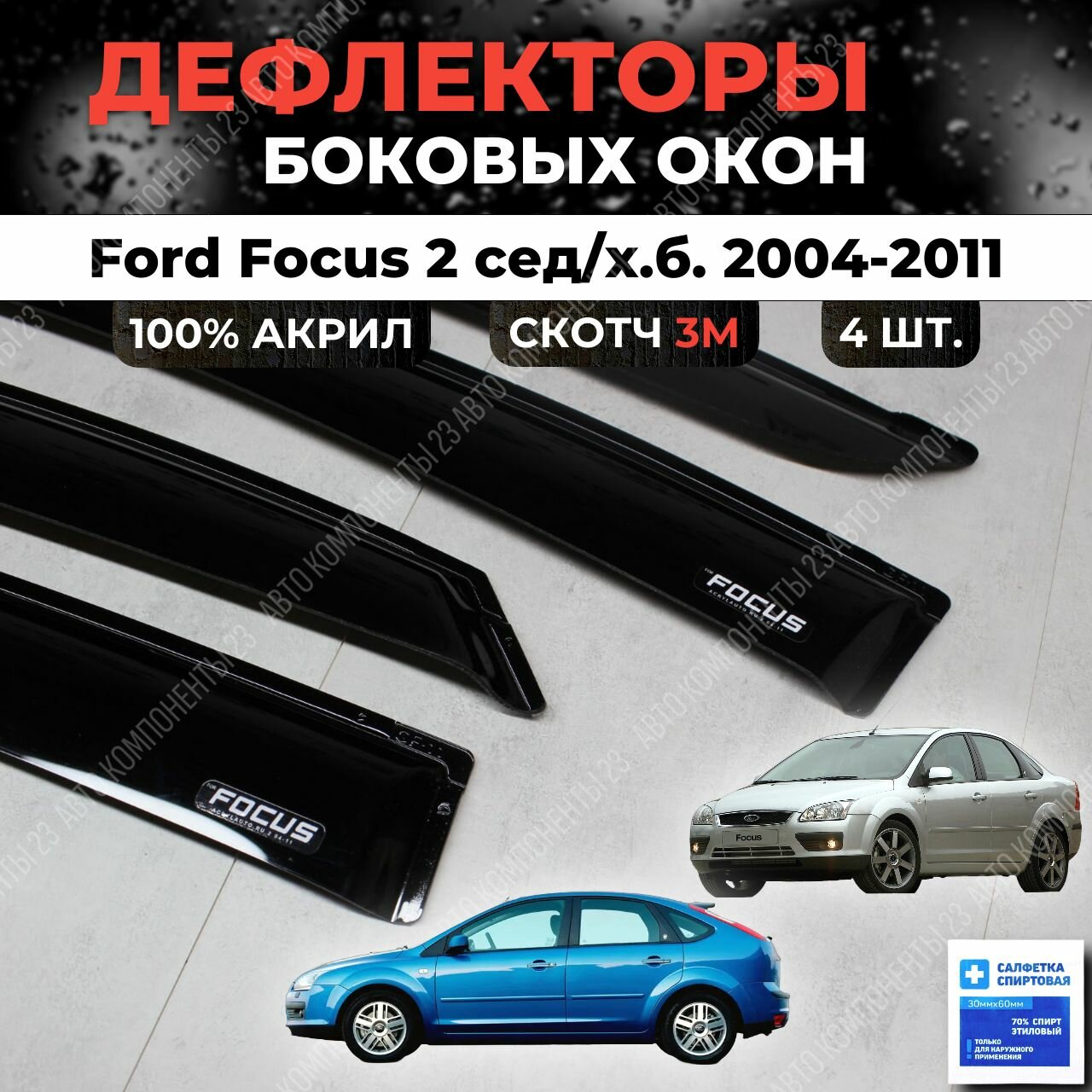 Дефлекторы окон Ford Focus 2 седан/хэтчбек 2004-2011 / Ветровики Форд Фокус информация: