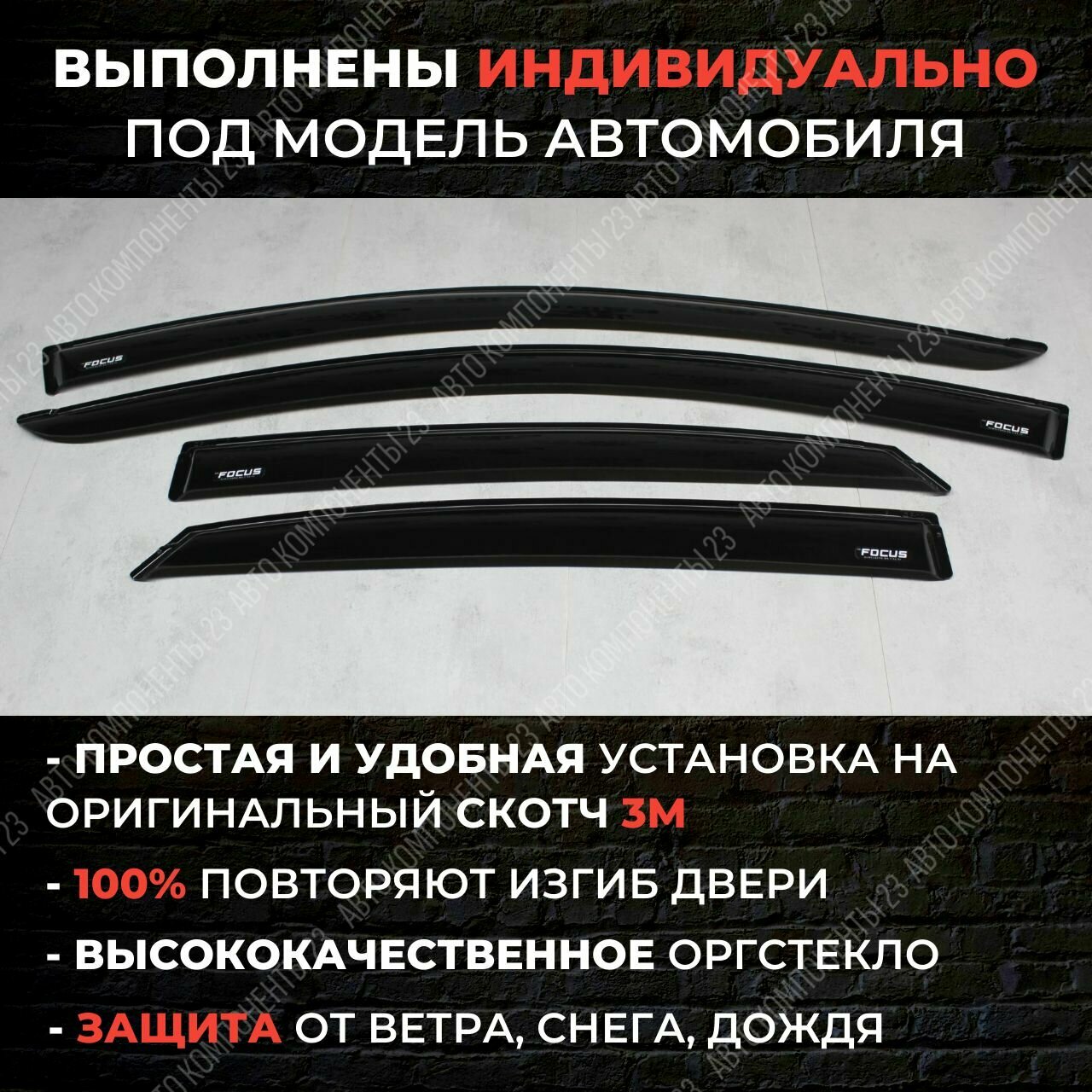 10 цен на Дефлекторы окон Ford Focus 2 седан/хэтчбек 2004-2011 / Ветровики Форд Фокус