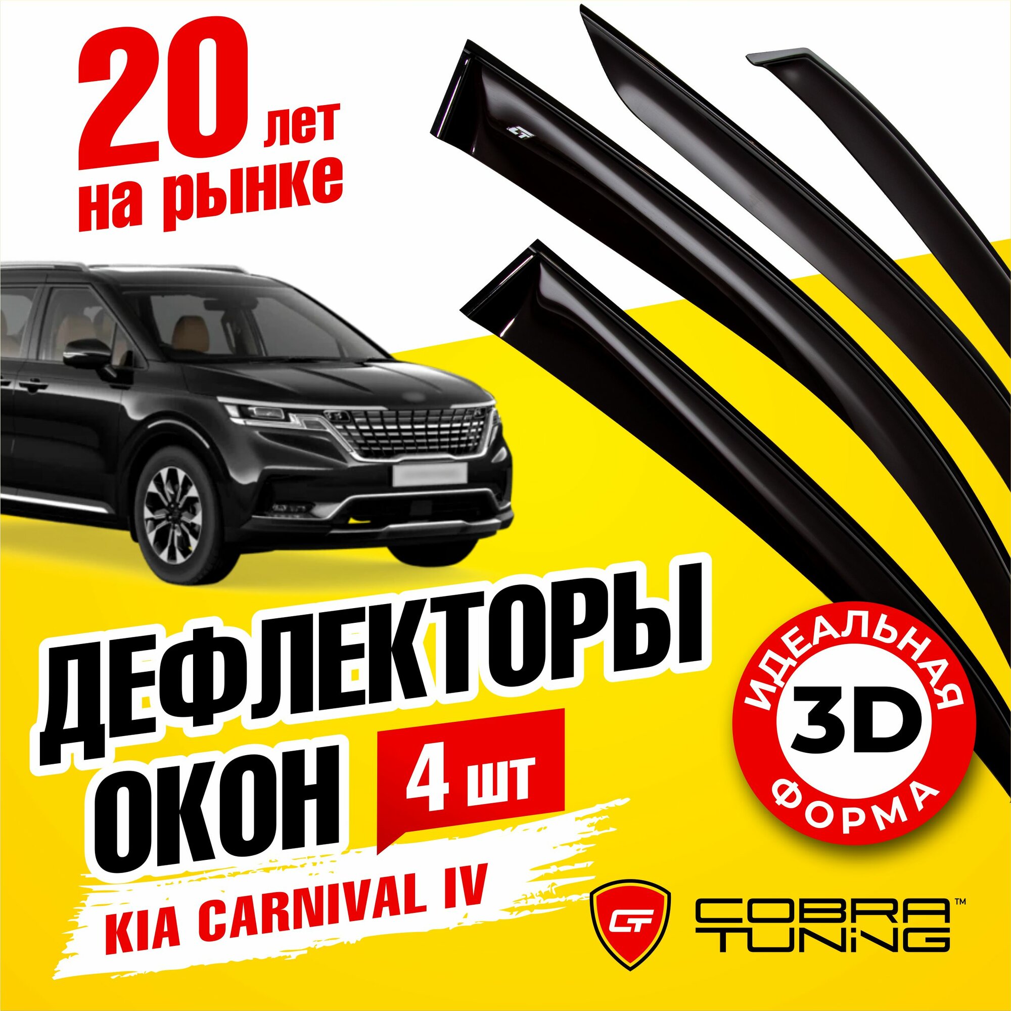 10 цен на Дефлекторы боковых окон для Kia Carnival 4 (Киа Карнивал) 2020-2024, ветровики на двери автомобиля, Cobra Tuning