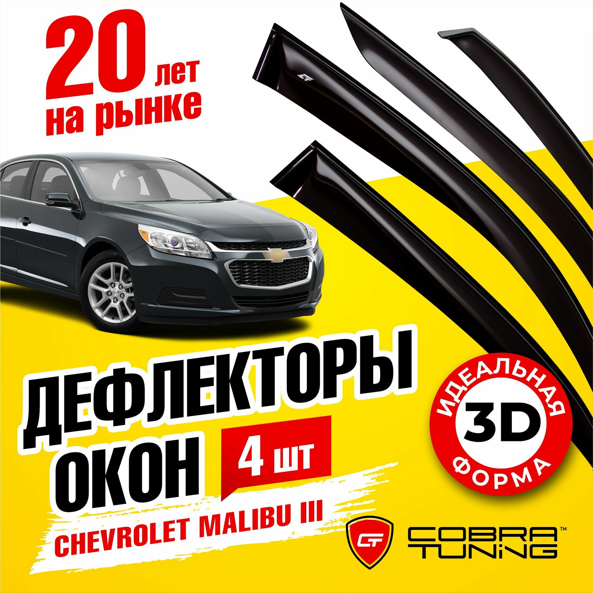 Отзывы на Дефлекторы боковых окон для Chevrolet Malibu (Шевроле Малибу) седан 2011-2016, ветровики на двери автомобиля, Cobra Tuning