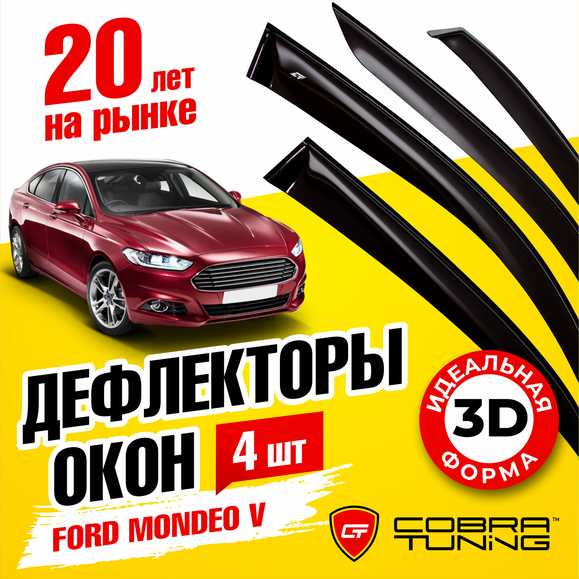 10 цен на Дефлекторы боковых окон для Ford Mondeo 5 (Форд Мондео) седан 2014-2022, Fusion (North America) Фьюжн (Северная Америка) 2012-2020, ветровики на двери автомобиля, Cobra Tuning