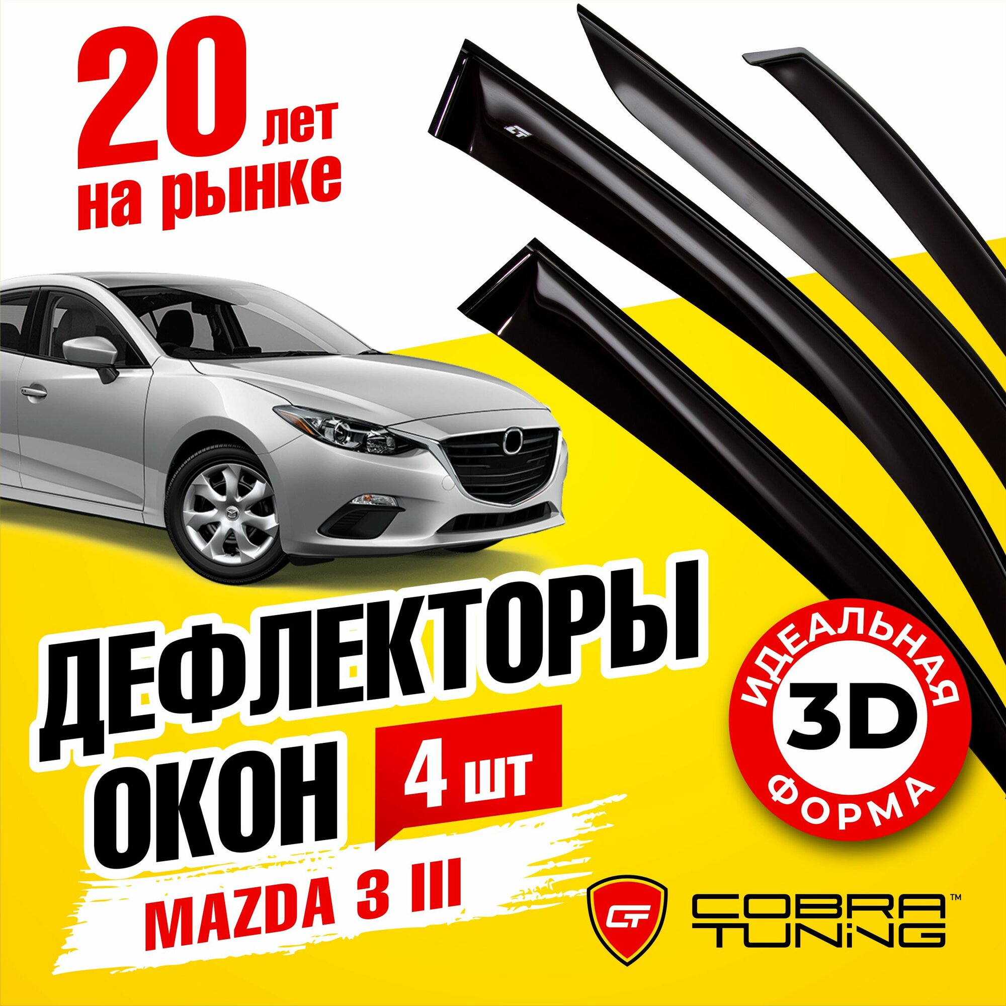 Отзывы на Дефлекторы боковых окон для Mazda (Мазда) 3 седан, хэтчбек III 2013-2019, ветровики на двери автомобиля, Cobra Tuning