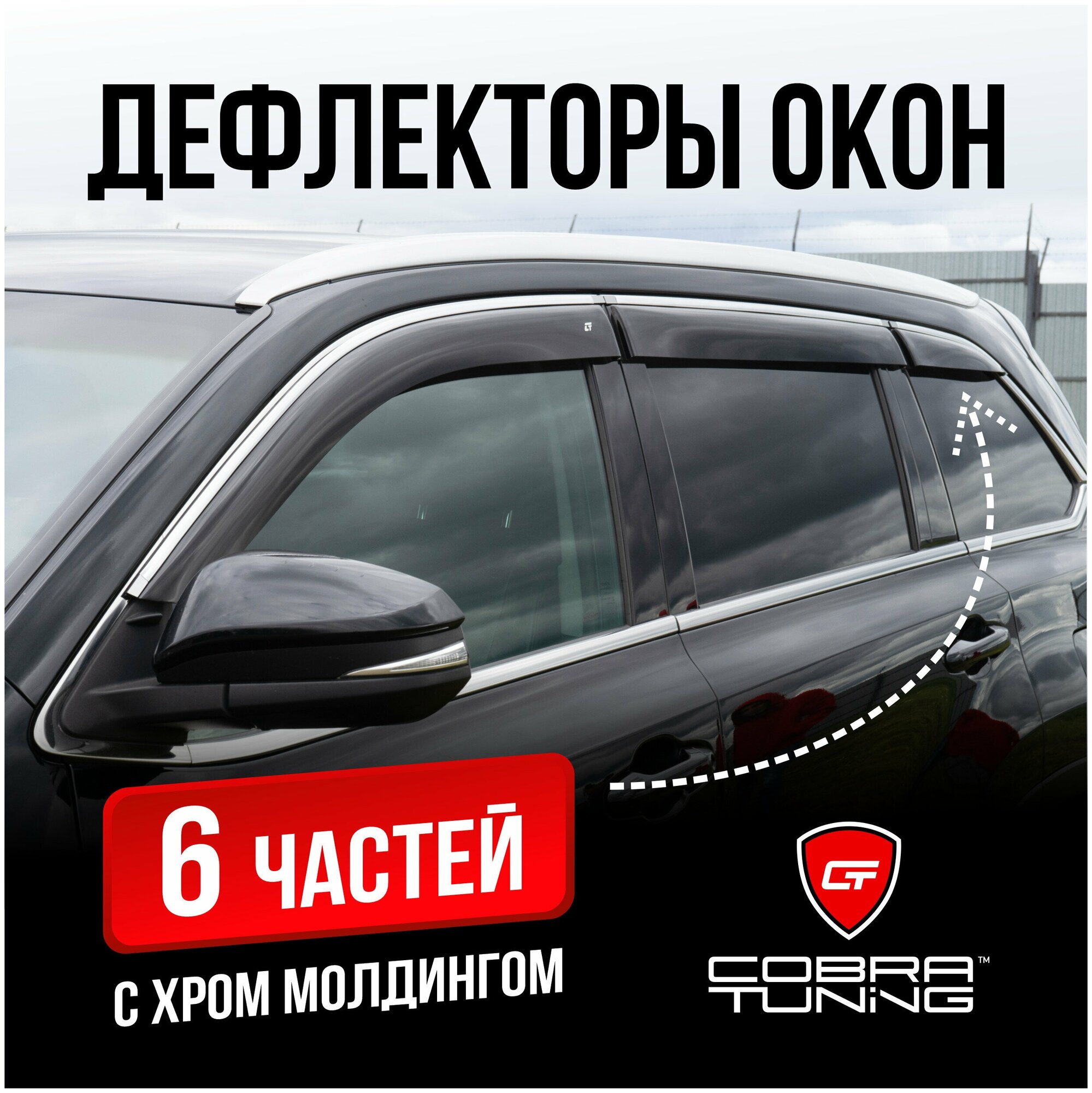 Дефлекторы боковых окон для Kia Sorento (Киа Соренто) (UM) 2014-2020 (Prime), ветровики с хром молдингом, полный комплект с уголками, 6 частей, Cobra Tuning