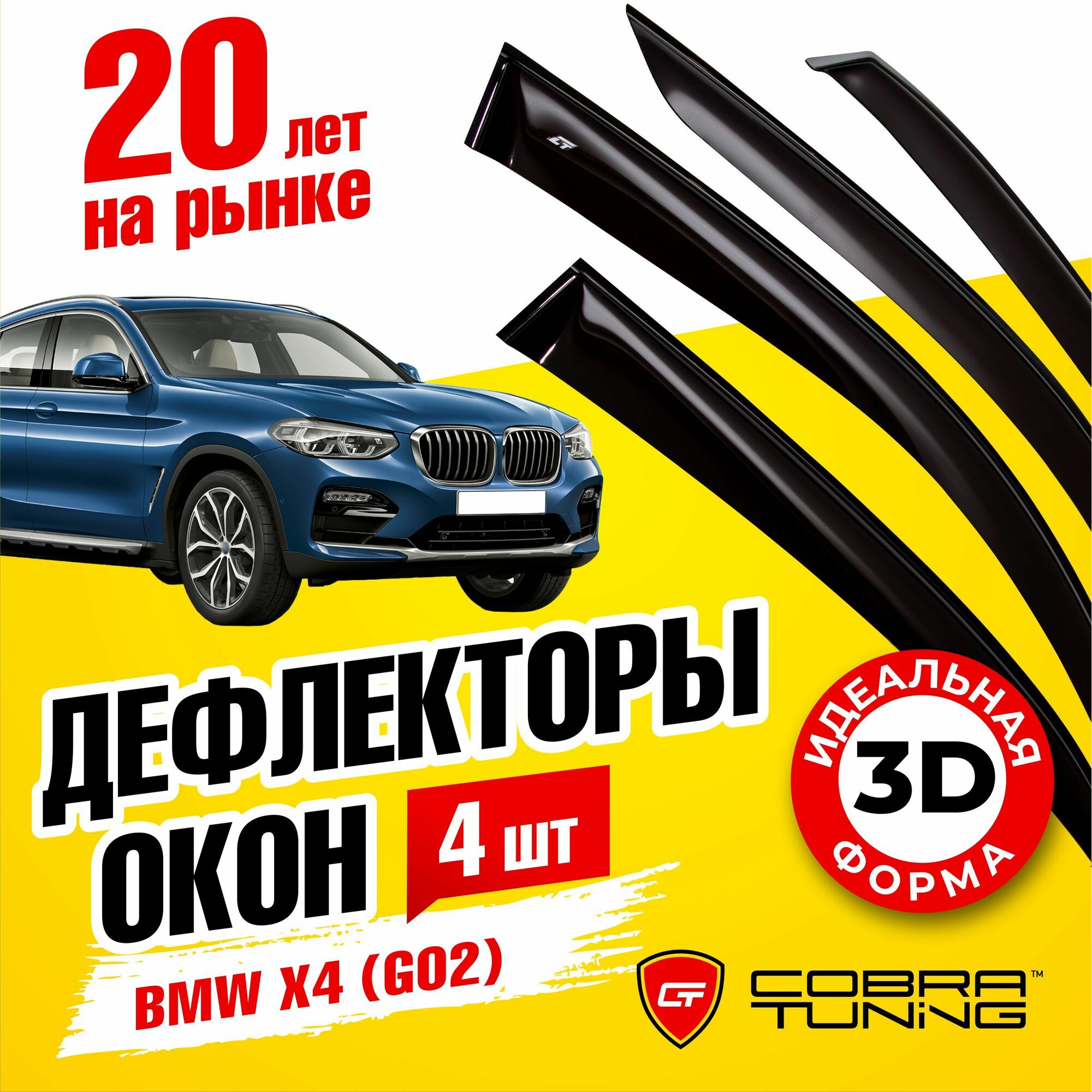 Дефлекторы боковых окон для BMW X4 (БМВ икс 4) (G02) 2018-2022, ветровики на двери автомобиля, Cobra Tuning информация: