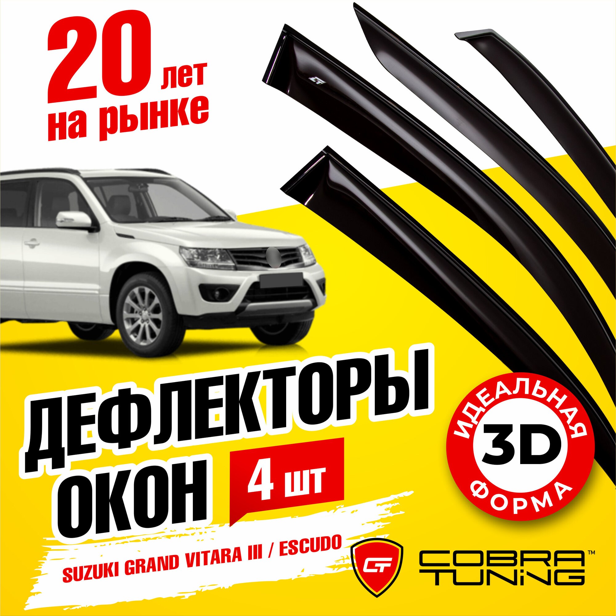 10 цен на Дефлекторы боковых окон для Suzuki Grand Vitara 3 (Сузуки Гранд Витара) 2005-2015, Escudo (Эскудо) 2005-2012, ветровики на двери автомобиля, Cobra Tuning