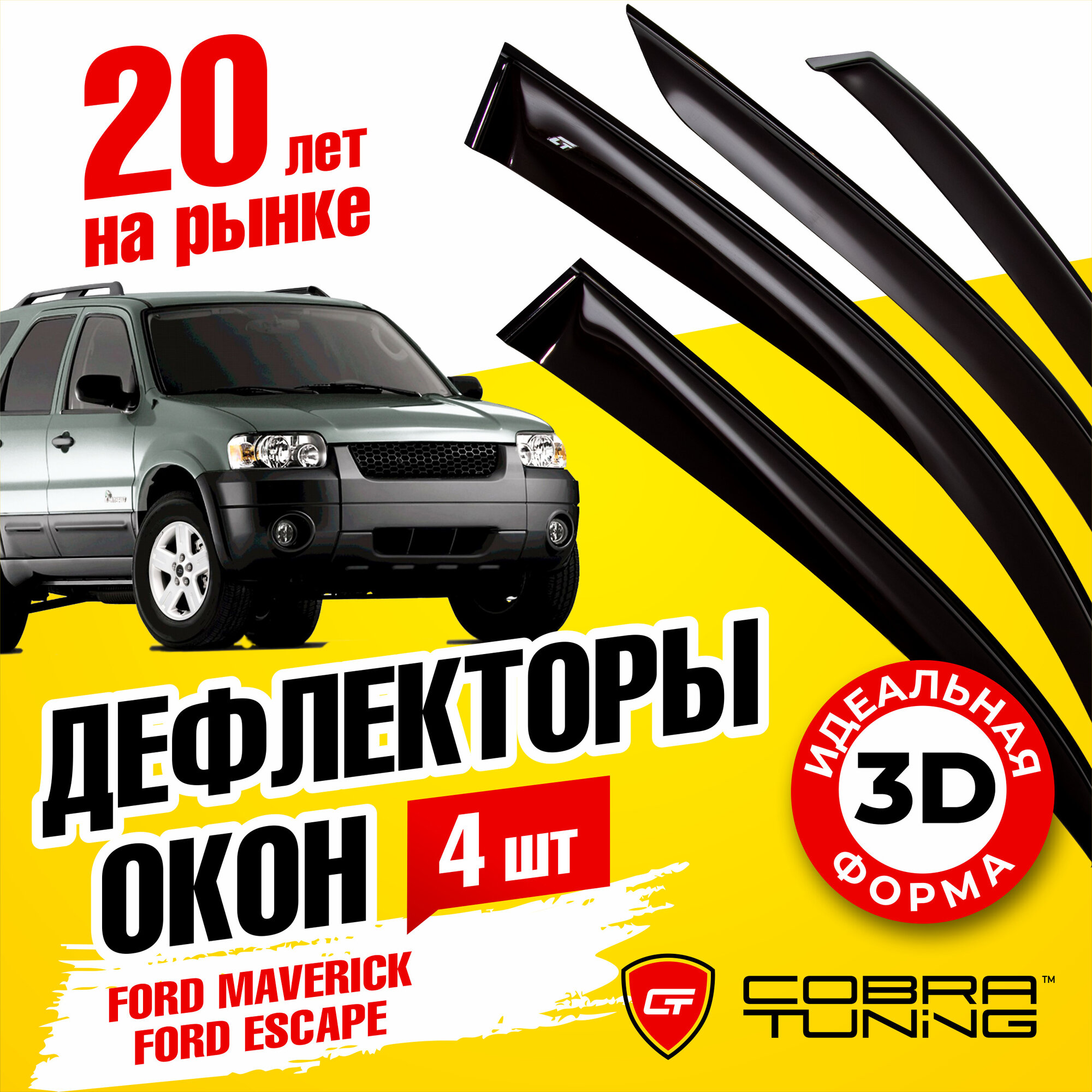 10 цен на Дефлекторы боковых окон для Ford Maverick 2 (Форд Маверик) 2000-2007, Escape (Эскейп) 2001-2004, ветровики на двери автомобиля, Cobra Tuning