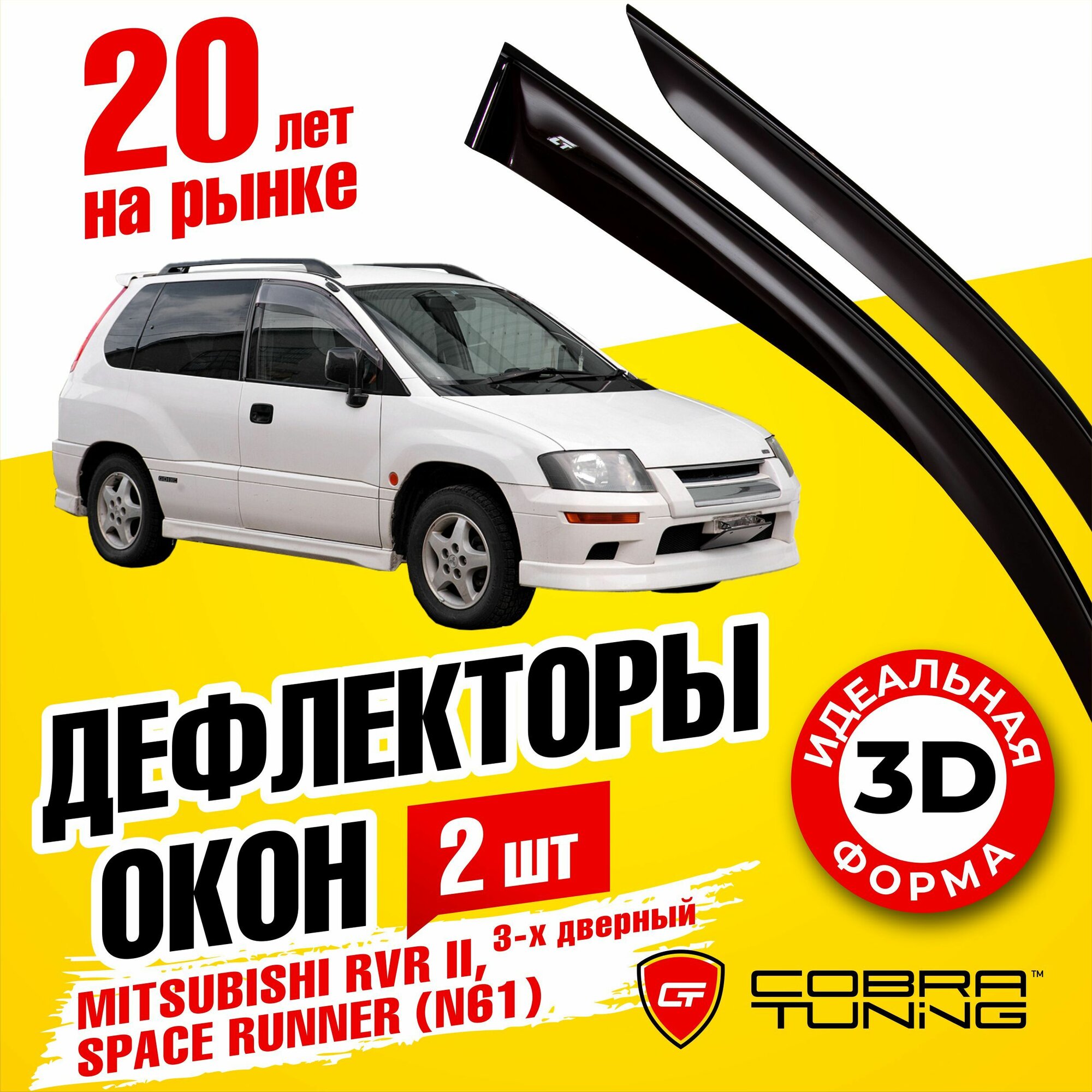 10 цен на Дефлекторы боковых окон для Mitsubishi RVR 2 (Митсубиси РВР) 1997-2002, Space Runner (Спейс Раннер) (N61) 1999-2002 3-х дверные, ветровики на двери автомобиля, Cobra Tuning