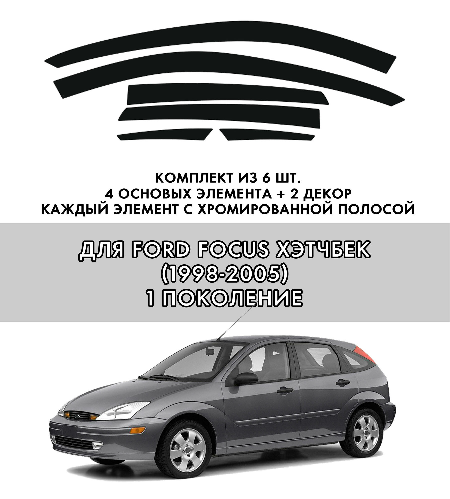 Отзывы на Плоские тюнинг дефлекторы с хромом Ford Focus 1 хэтчбек пятидверный (1998-2005) / Ветровики Форд Фокус 1. Комплект 6 шт.