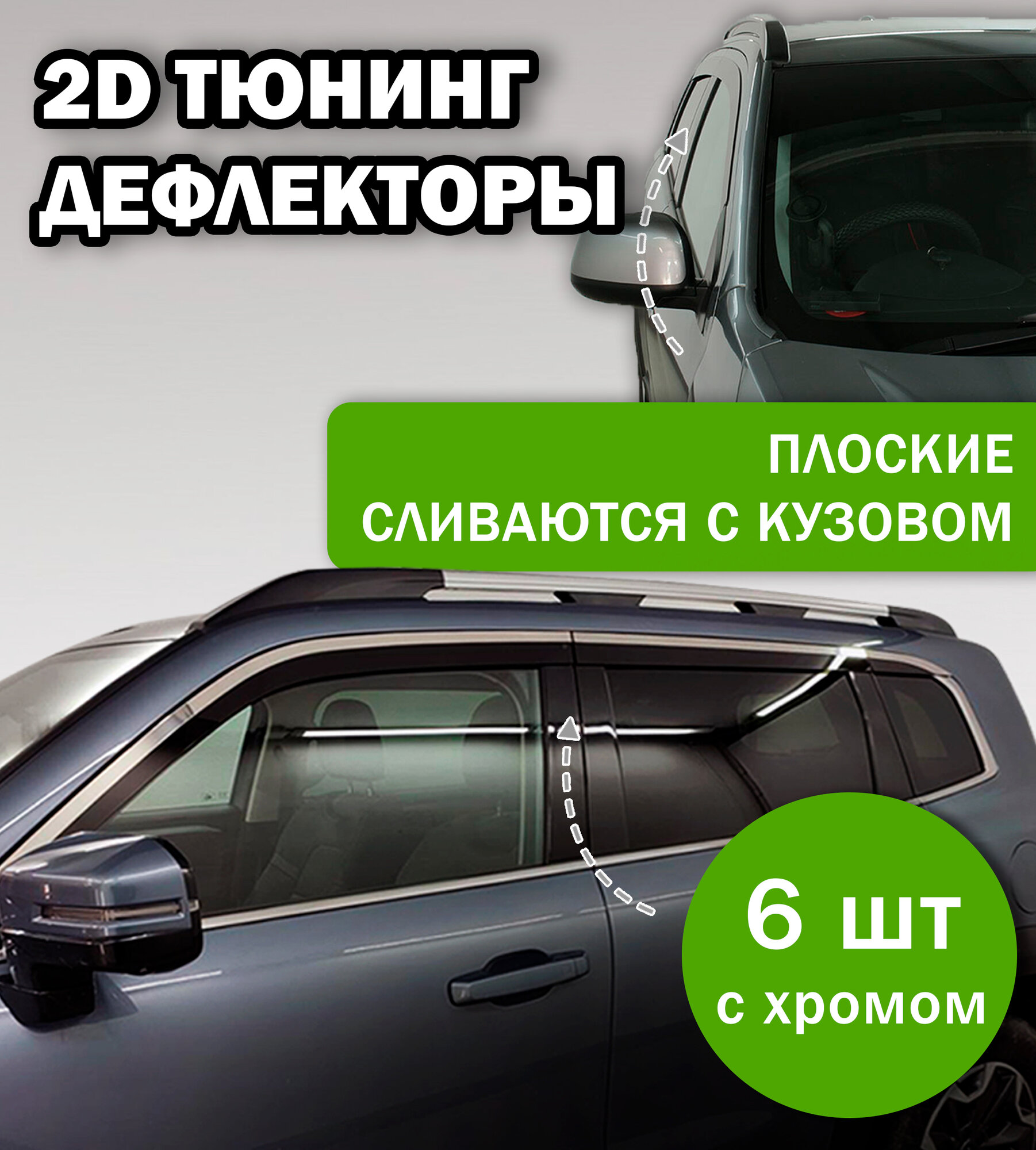 Плоские тюнинг дефлекторы / 2d дефлекторы окон Haval Jolion (2021-н. в) Ветровики на Хавал Джулион. Комплект 6 шт.