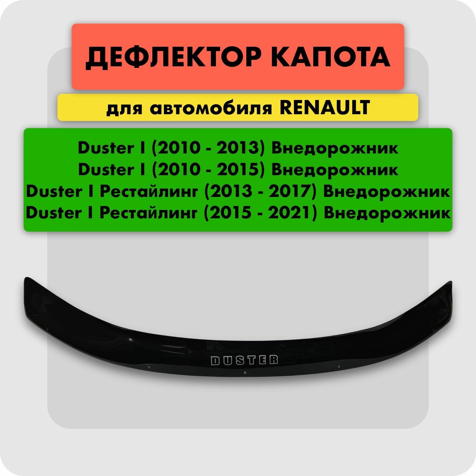 10 цен на Дефлектор капота (Мухобойка) на RENAULT DUSTER 2010-2021, отбойник на капот Рено Дастер