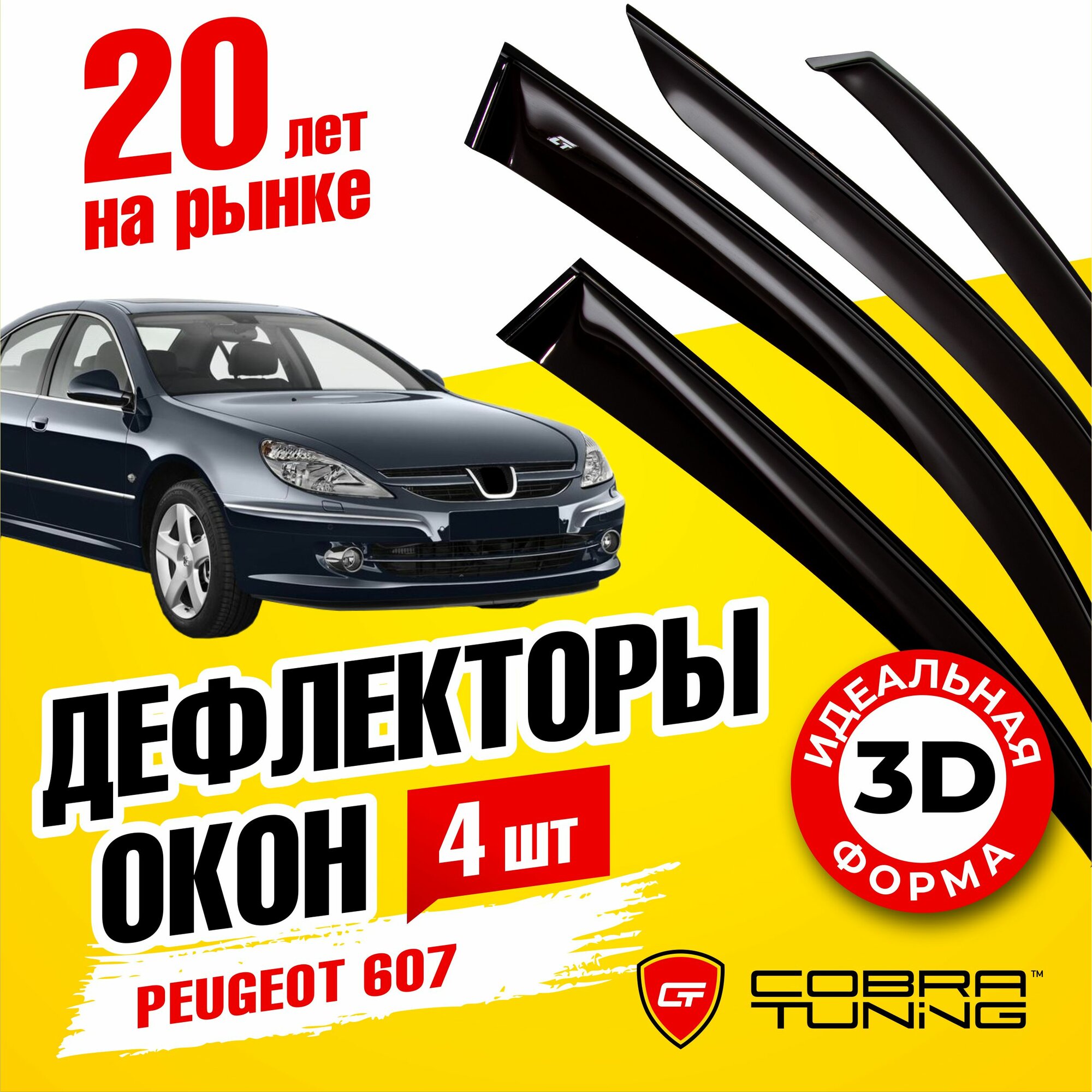 10 цен на Дефлекторы боковых окон для Peugeot 607 (Пежо) седан 1999-2010, ветровики на двери автомобиля, Cobra Tuning