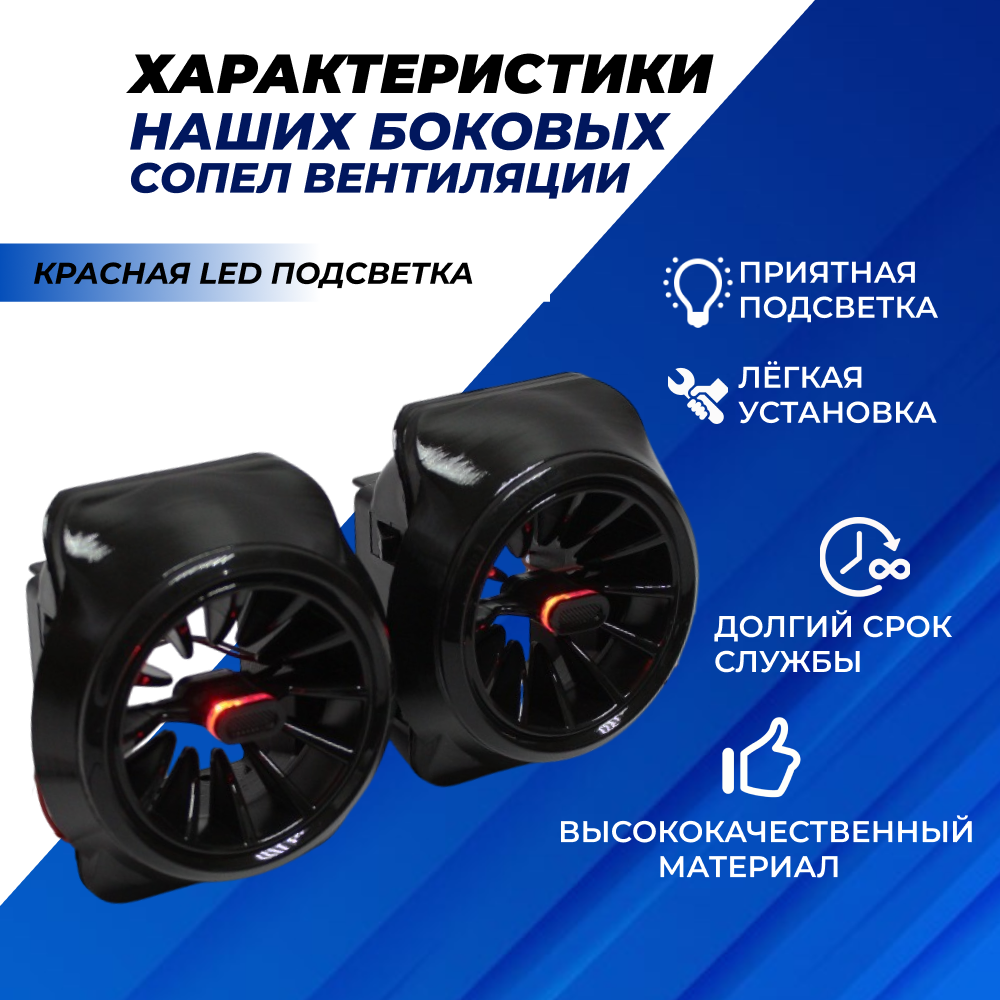 Дефлекторы 2107 печки боковые синяя LED подсветка в стиле АМГ 2шт. сопла воздуховода с регулировкой глянцевые AMG для обогрева стекла на панель приборов, облицовка черный лак 6 520 ₽