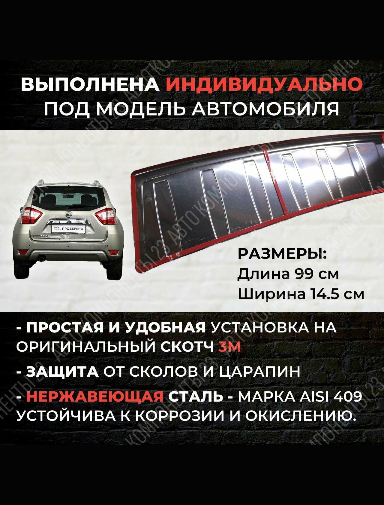 | Дополнительная информация | накладка на задний бампер из нержавеющей стали это стильный и функциональный аксессуар для вашего автомобиля, она предотвращает царапины, сколы и другие повреждения бампер, установка проста, без специальных инструментов, нержавеющая сталь обеспечивает надежную защиту от коррозии, накладка добавляет элегантности и стиля задней части автомобиля, придавая ему уникальный вид |