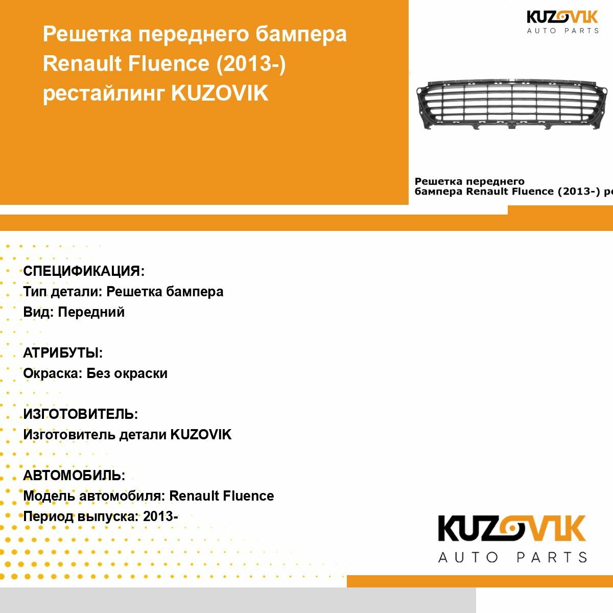 10 цен на Решетка переднего бампера Renault Fluence Рено Флюенс (2013-) рестайлинг