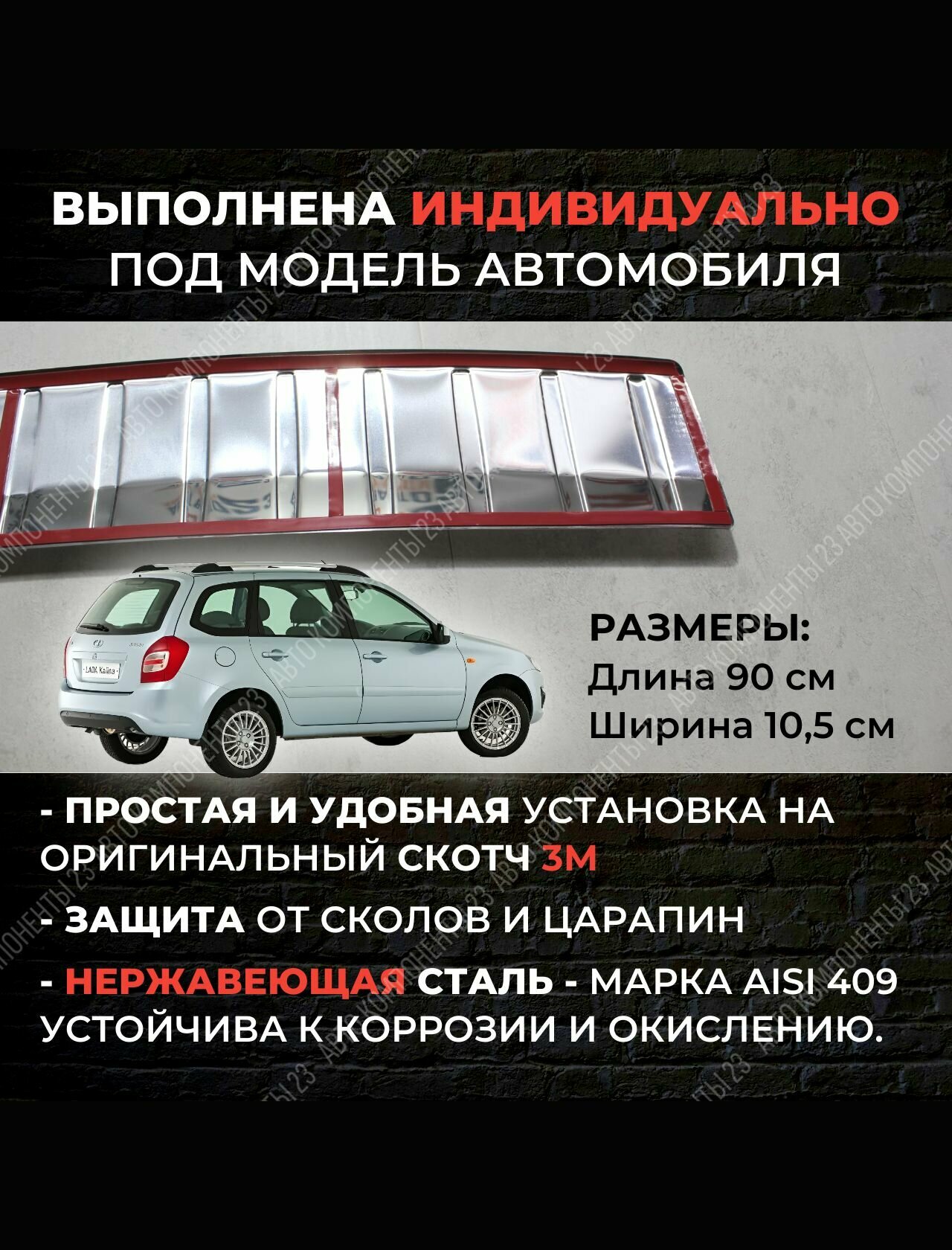 | Дополнительная информация | накладка на задний бампер из нержавеющей стали это стильный и функциональный аксессуар для вашего автомобиля, она предотвращает царапины, сколы и другие повреждения бампер, установка проста, без специальных инструментов, нержавеющая сталь обеспечивает надежную защиту от коррозии, накладка добавляет элегантности и стиля задней части автомобиля, придавая ему уникальный вид |