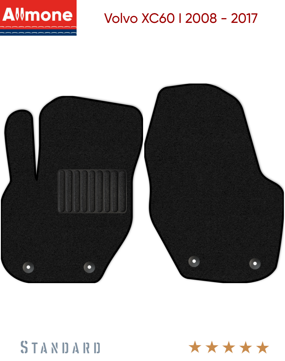 Коврики в салон текстильные Allmone "Стандарт" для Volvo XC60 1 (DZ) 2008 - 2017, черные, 2шт. / Вольво информация: