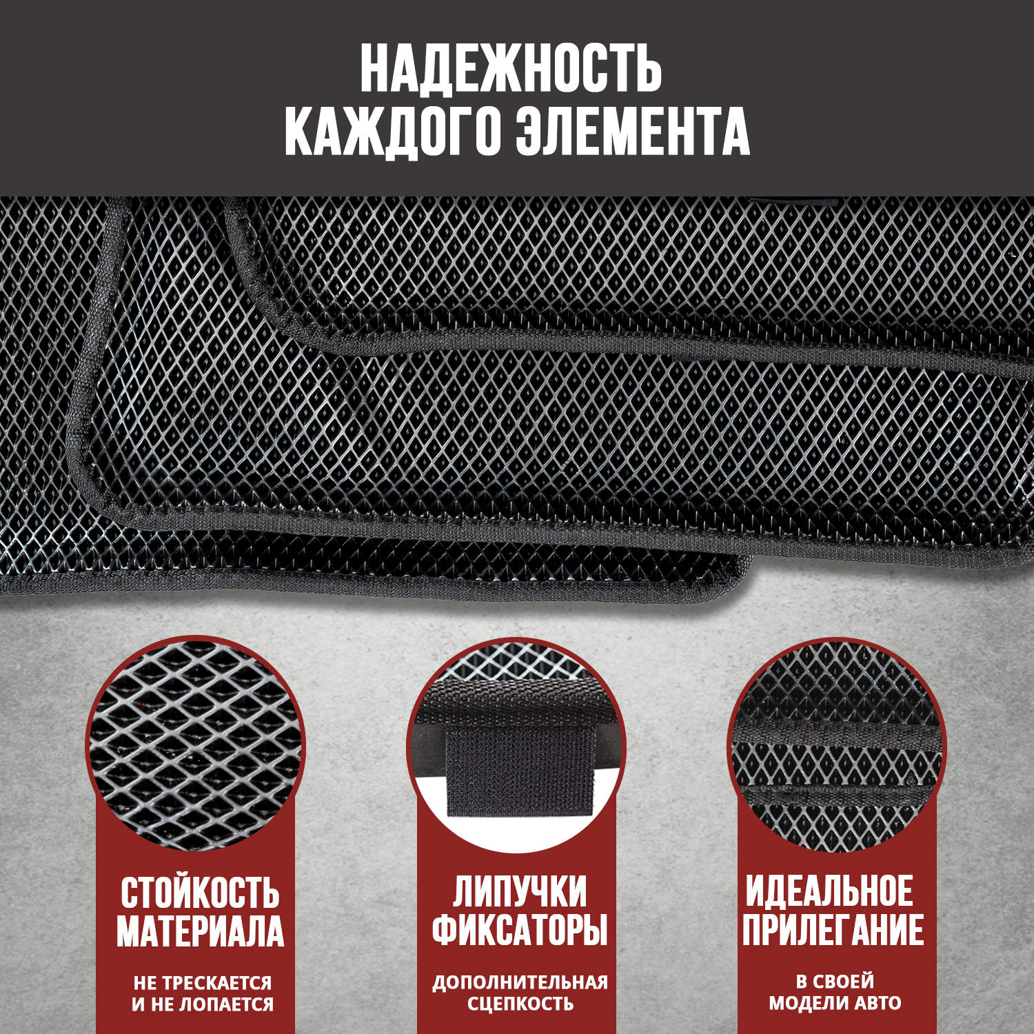 | Особенности | Вышивка / Износоустойчивая ткань / Крепеж / нескользящее покрытие / С бортом |