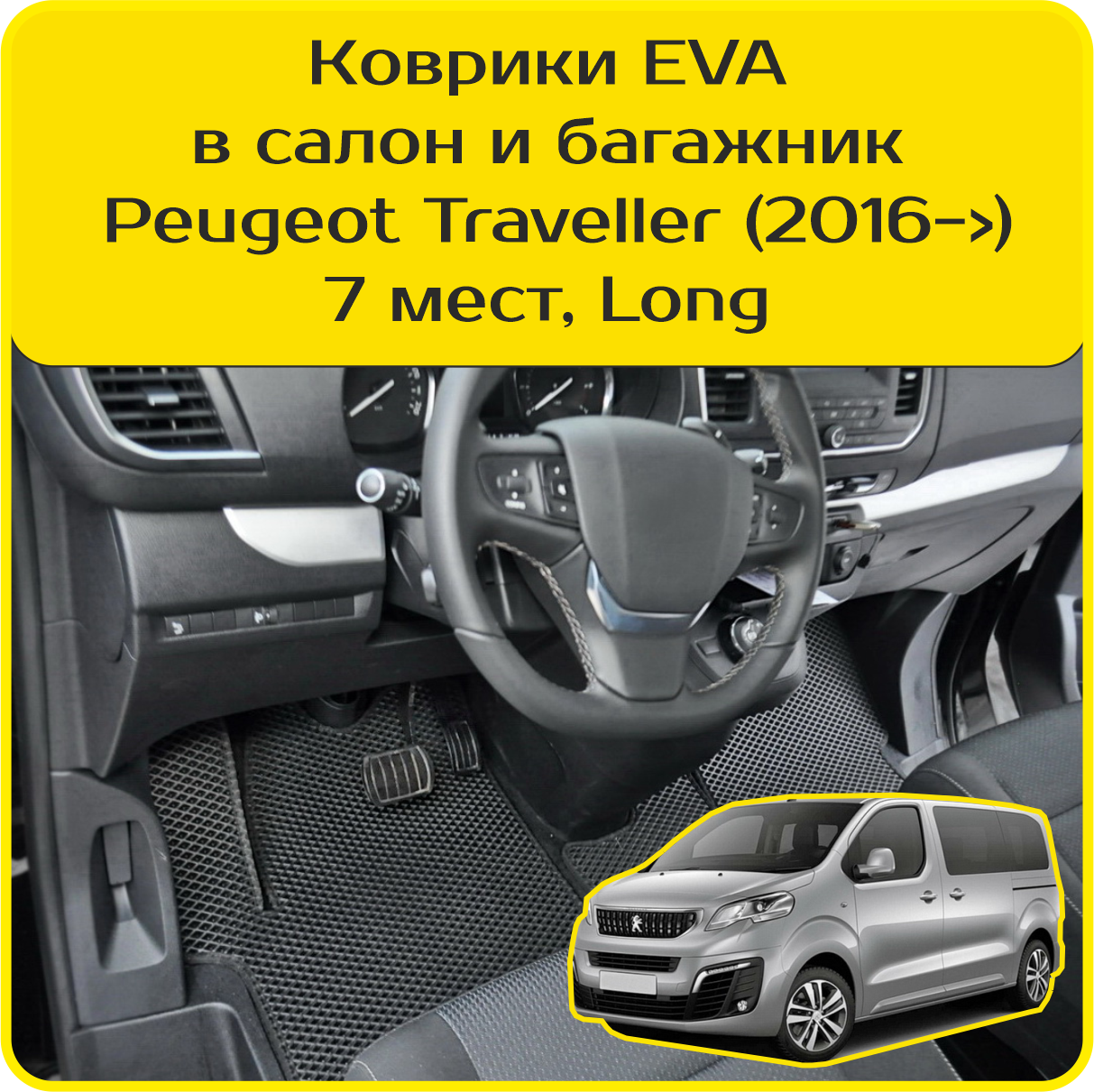 10 цен на Коврики EVA для Peugeot Traveller \ Пежо Тревеллер (2016-н/в). Версия 7 мест, «Long». Комплект в салон и багажник
