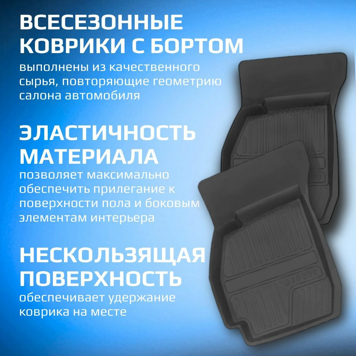 Задние коврики в салон Lada GRANTA / гранта LUX высокий борт 40 мм резина, 2 шт