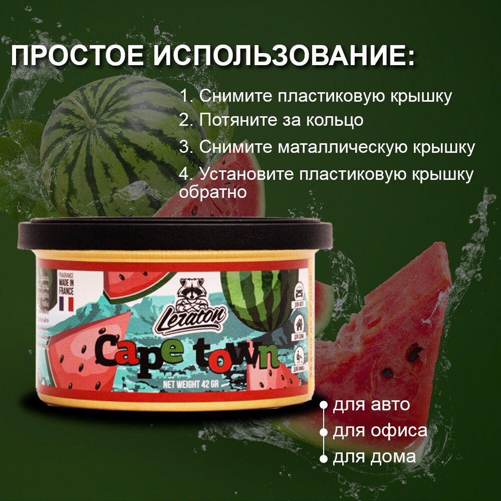 Ароматизатор для автомобиля в банке LERATON Cape town (Water Melon/Арбуз) информация: