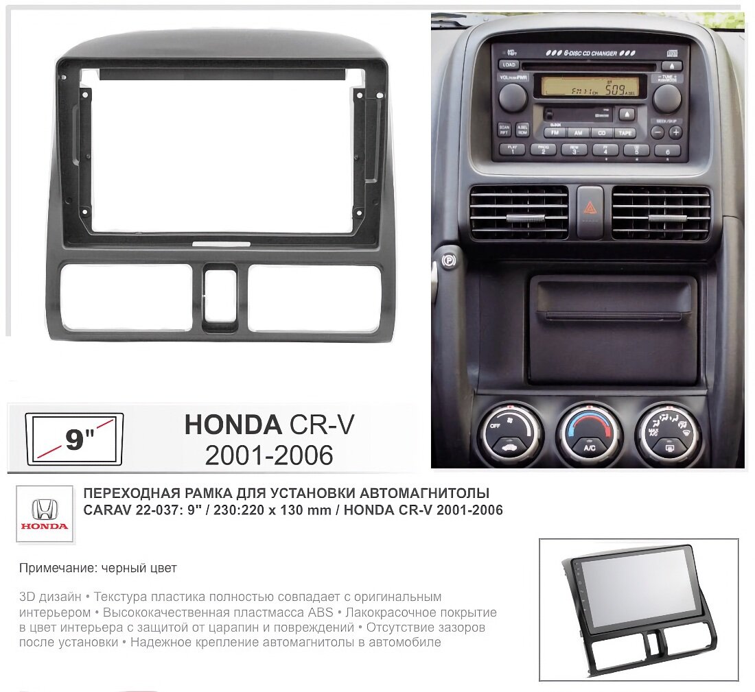 Переходная рамка Honda CR-V 2001-2006, 9" дюймов (230:220:130 мм) FC294 информация: