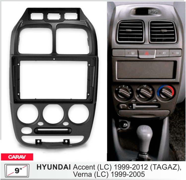 Carav 22-1895 | 9" переходная рамка Hyundai Accent (LC) 1999-2012, Verna (LC) 1999-2005 (with 3 buttons) информация:
