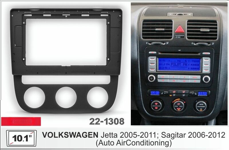 Отзывы на Рамка переходная для магнитолы 10.2" (цв. Черный) на VOLKSWAGEN Jetta 2005-2011; Sagitar 2006-2012 Климат