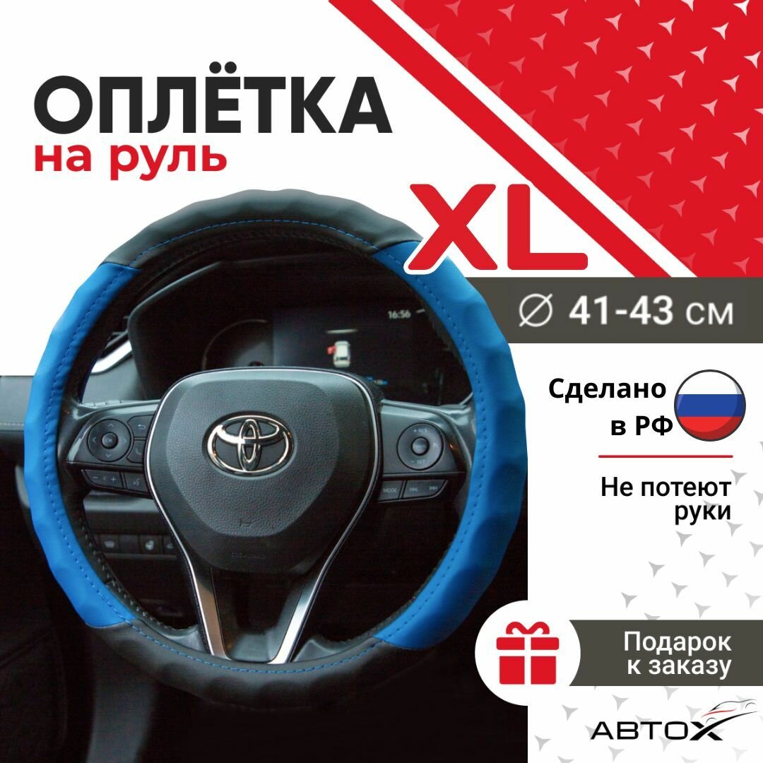 Отзывы на Оплетка чехол на руль. Размер XL 41-43 см. Черная-Синяя-Волна.