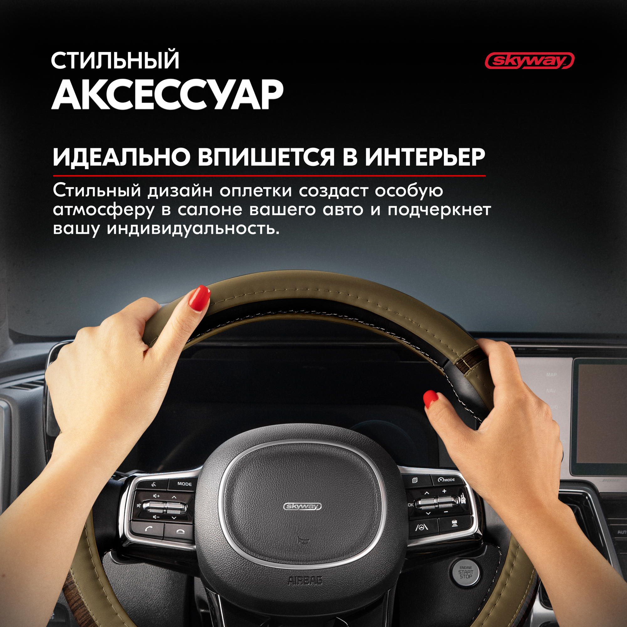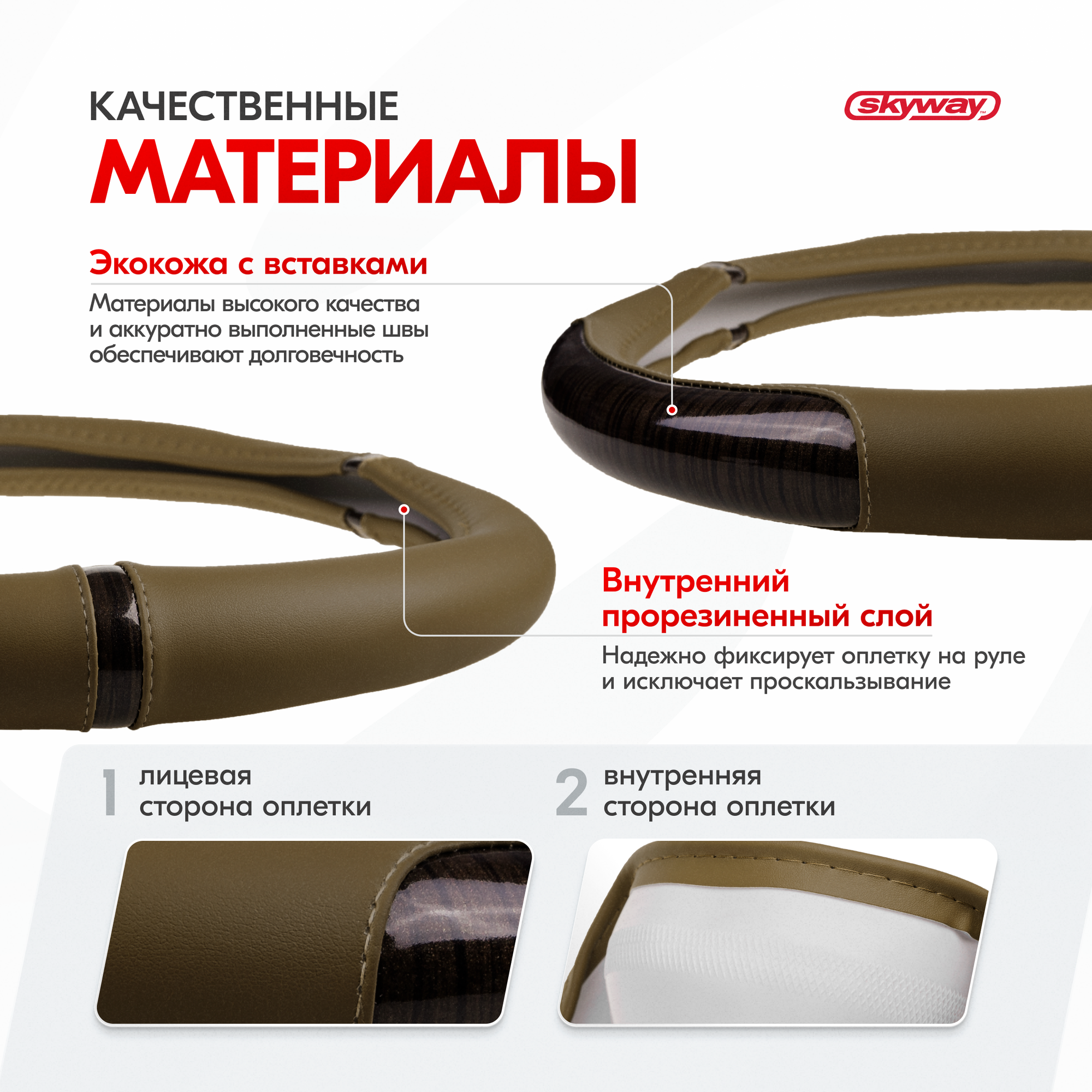 10 цен на Оплетка на руль SKYWAY Wood-10 с диаметром 37-39 см и размером M, S01102440