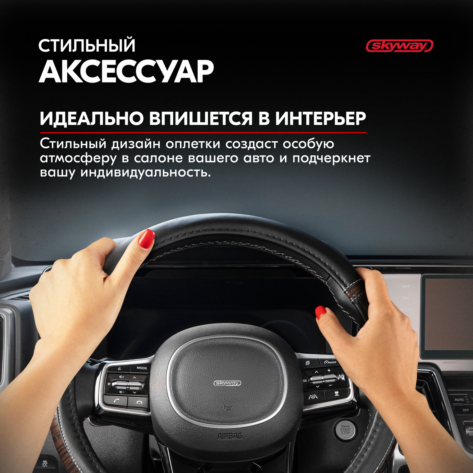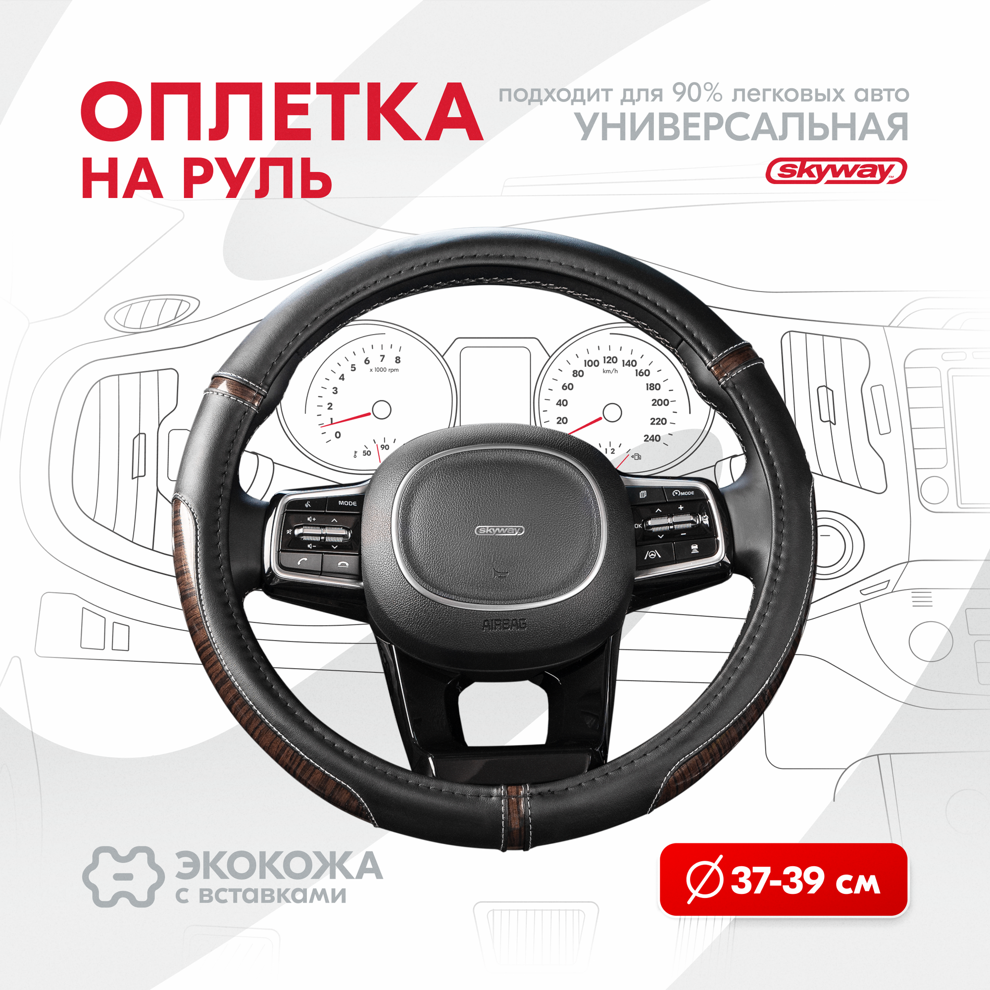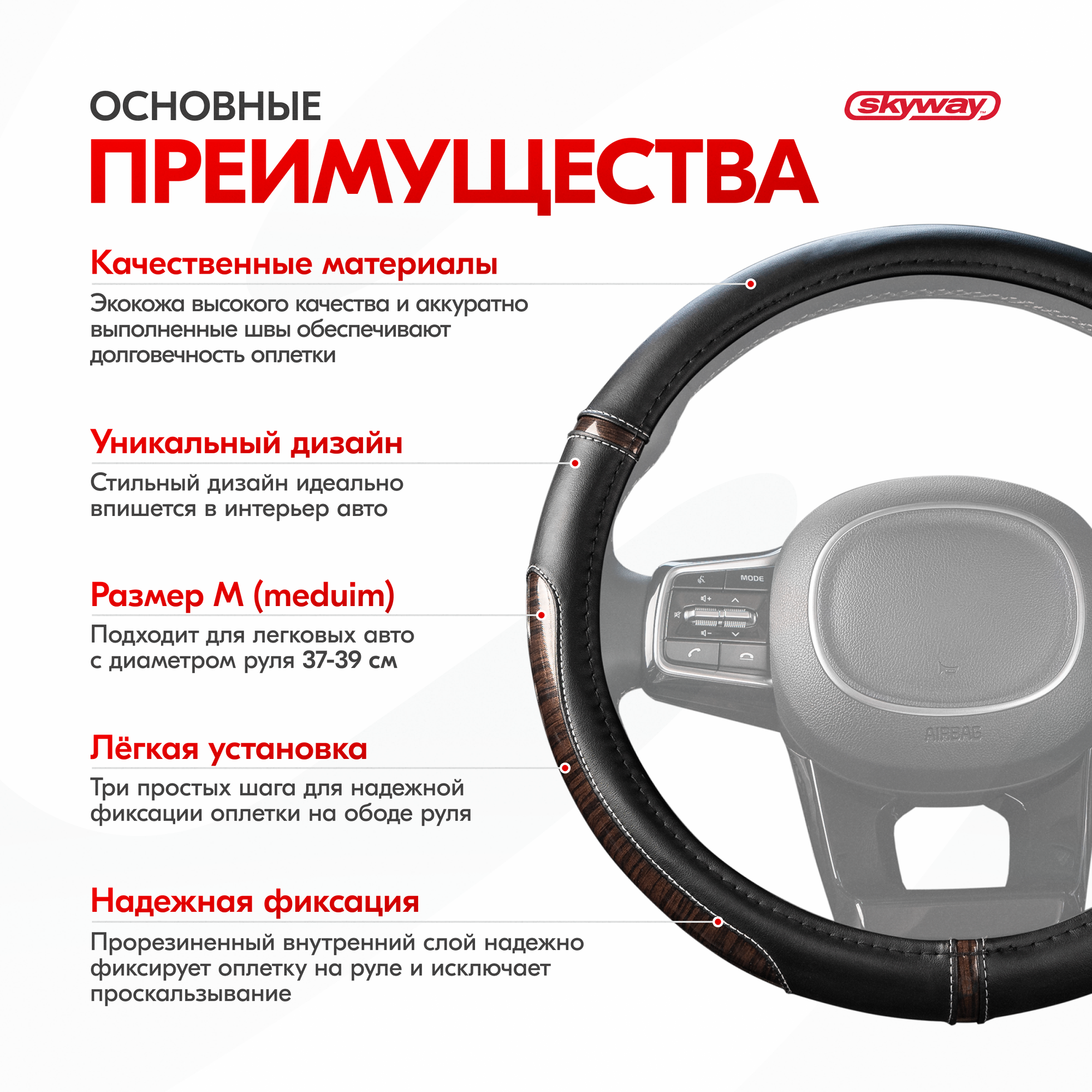 Оплетка руля SKYWAY S01102439, экокожа, M 37/38/39 см, черная, S01102439 информация: