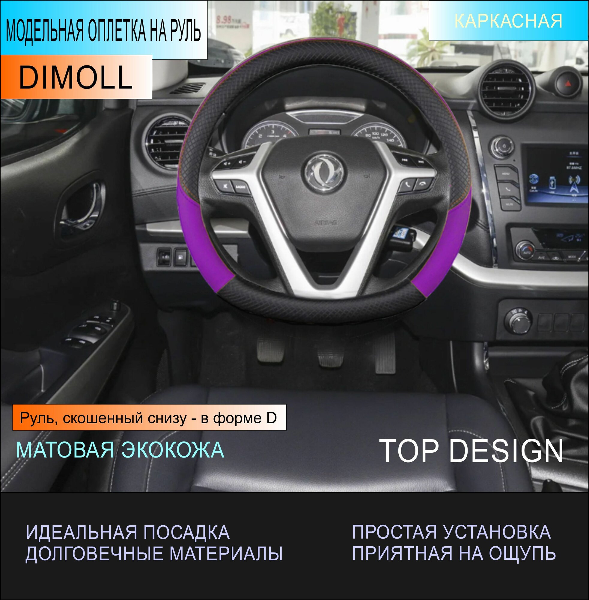 Отзывы на Оплетка Dongfeng Shine Max 2021 - н. в. / Чехол на руль экокожа черный / фиолетовый (D-образный) 37-38 см