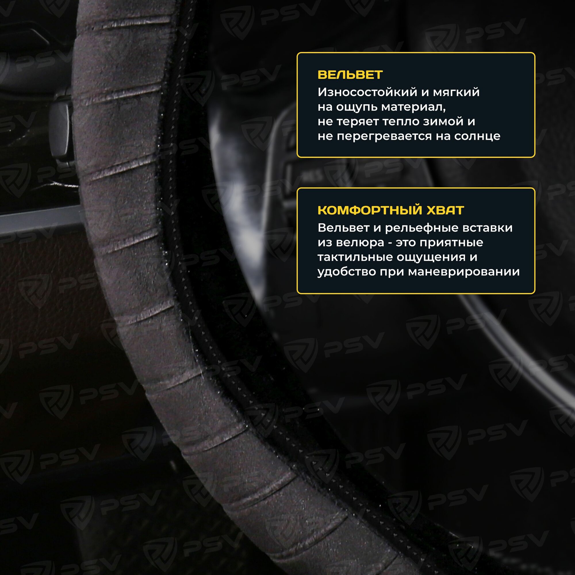 Чехол на руль оплетка PSV LOSK (Черный/Серый велюр/Отстрочка серая) M 37-39 см 1 460 ₽
