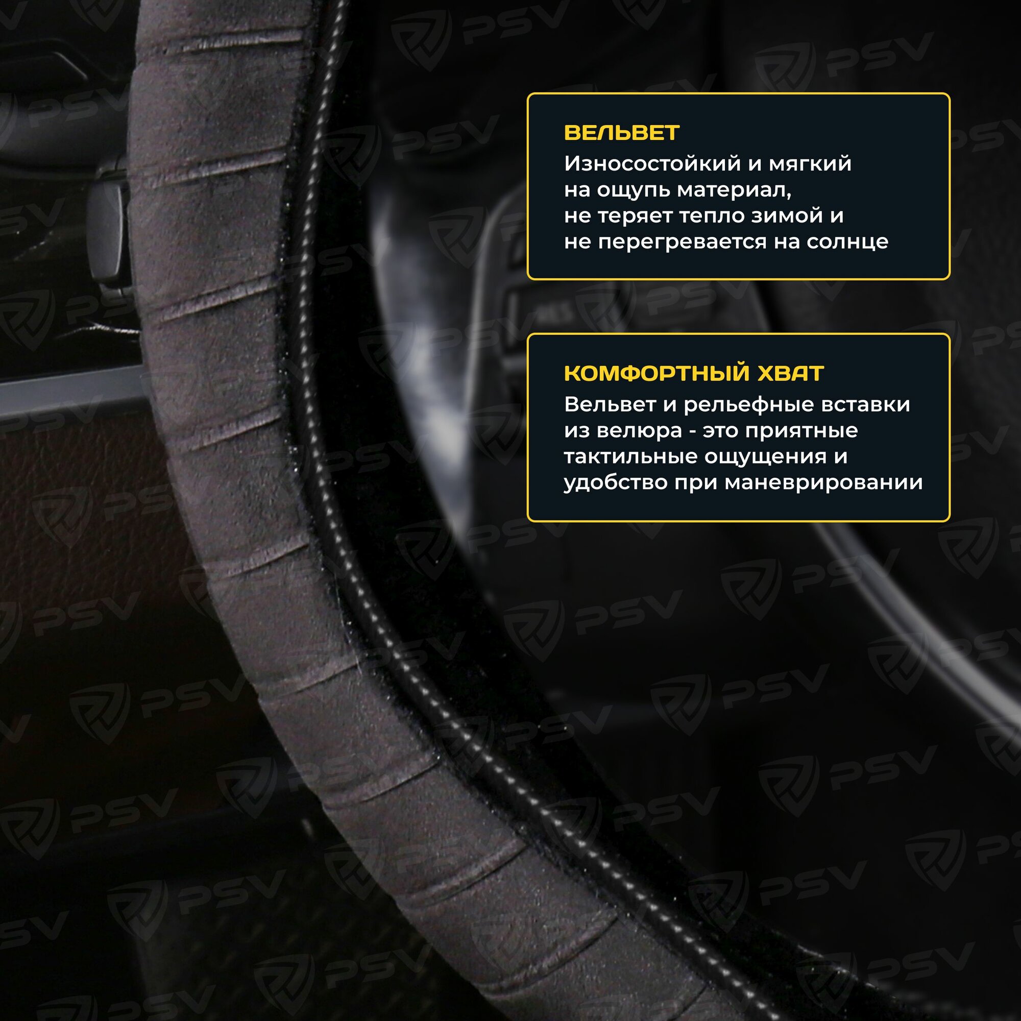 Чехол на руль оплетка PSV LOSK (Черный/Серый велюр/Отстрочка серая) M 37-39 см 1 460 ₽