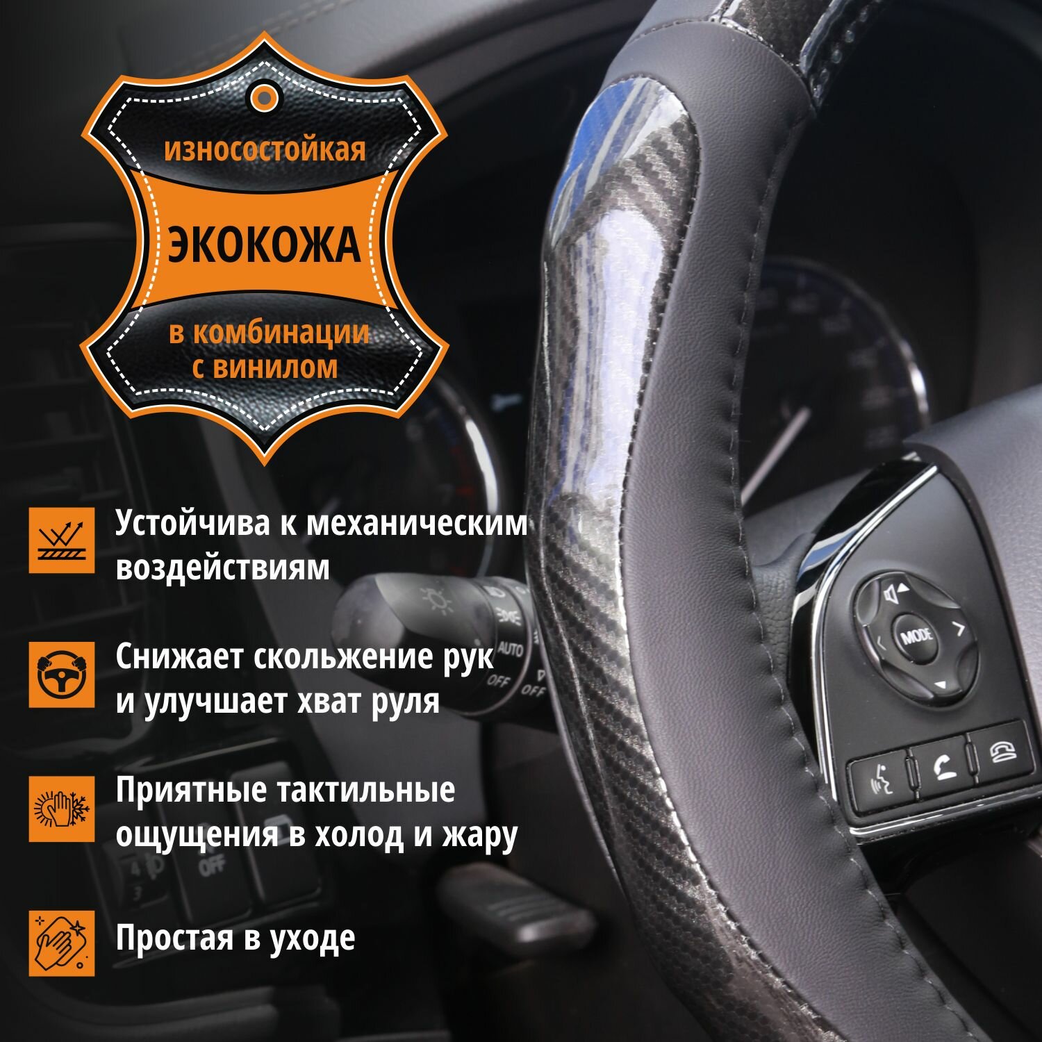 Оплетка на руль универсальная из экокожи «CARBON» М 37-39 см (чёрная, строчка чёрная) belais #21608