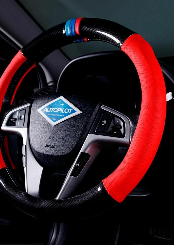 Отзывы на Оплетка, чехол (накидка) на руль Ниссан Сентра (2012 - 2017) седан / Nissan Sentra, Карбон и Экокожа, Черный и красный с красной и синей полоской