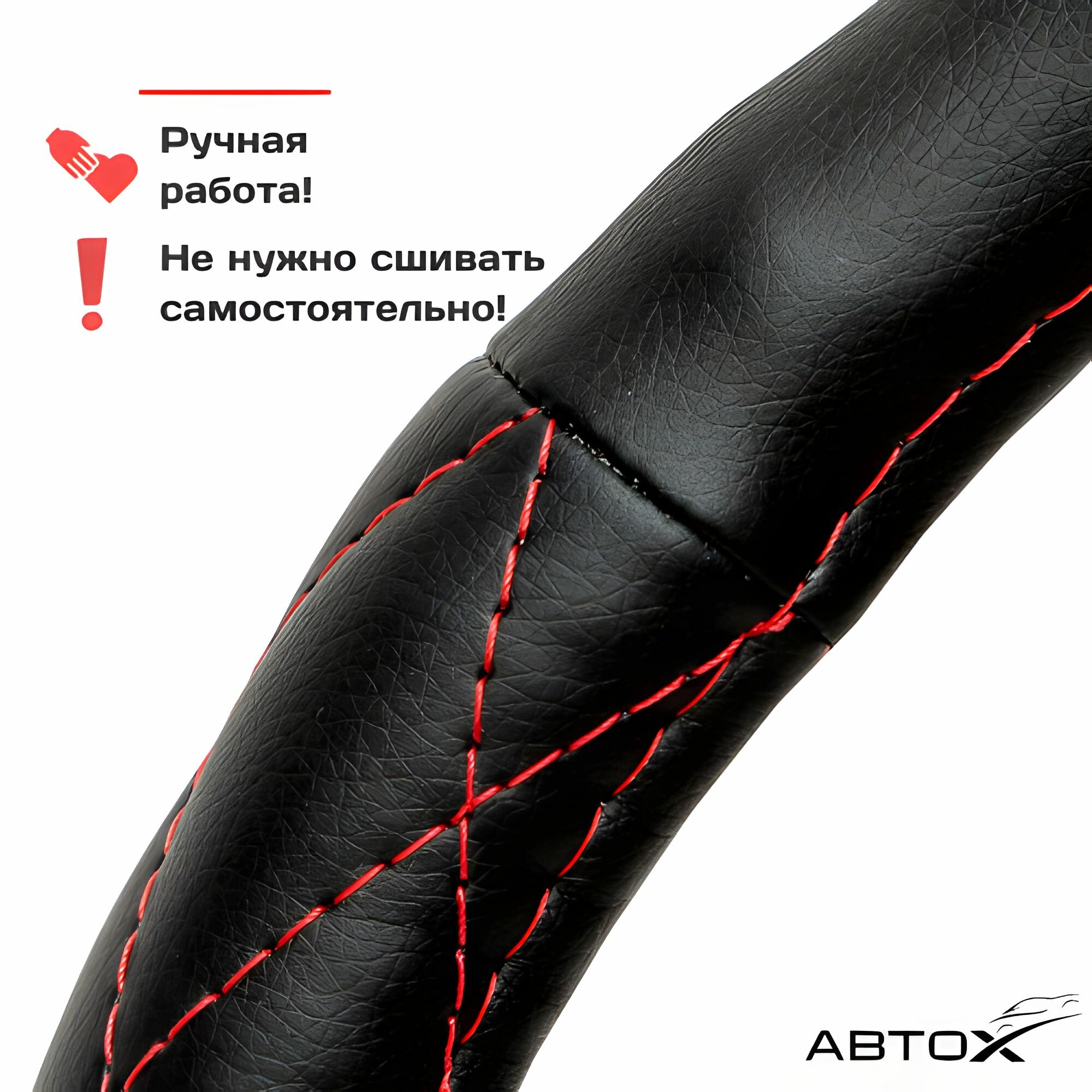 10 цен на Оплетка чехол на руль. Размер L- 39-41 см. Красный ромб. Экокожа.