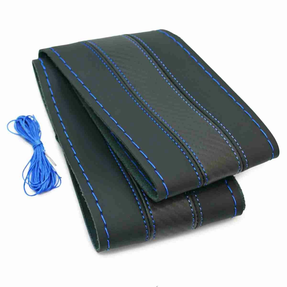 10 цен на Оплетка на руль универсальная из экокожи «CARBON» М 37-39 см (чёрная, строчка синяя) belais #21610
