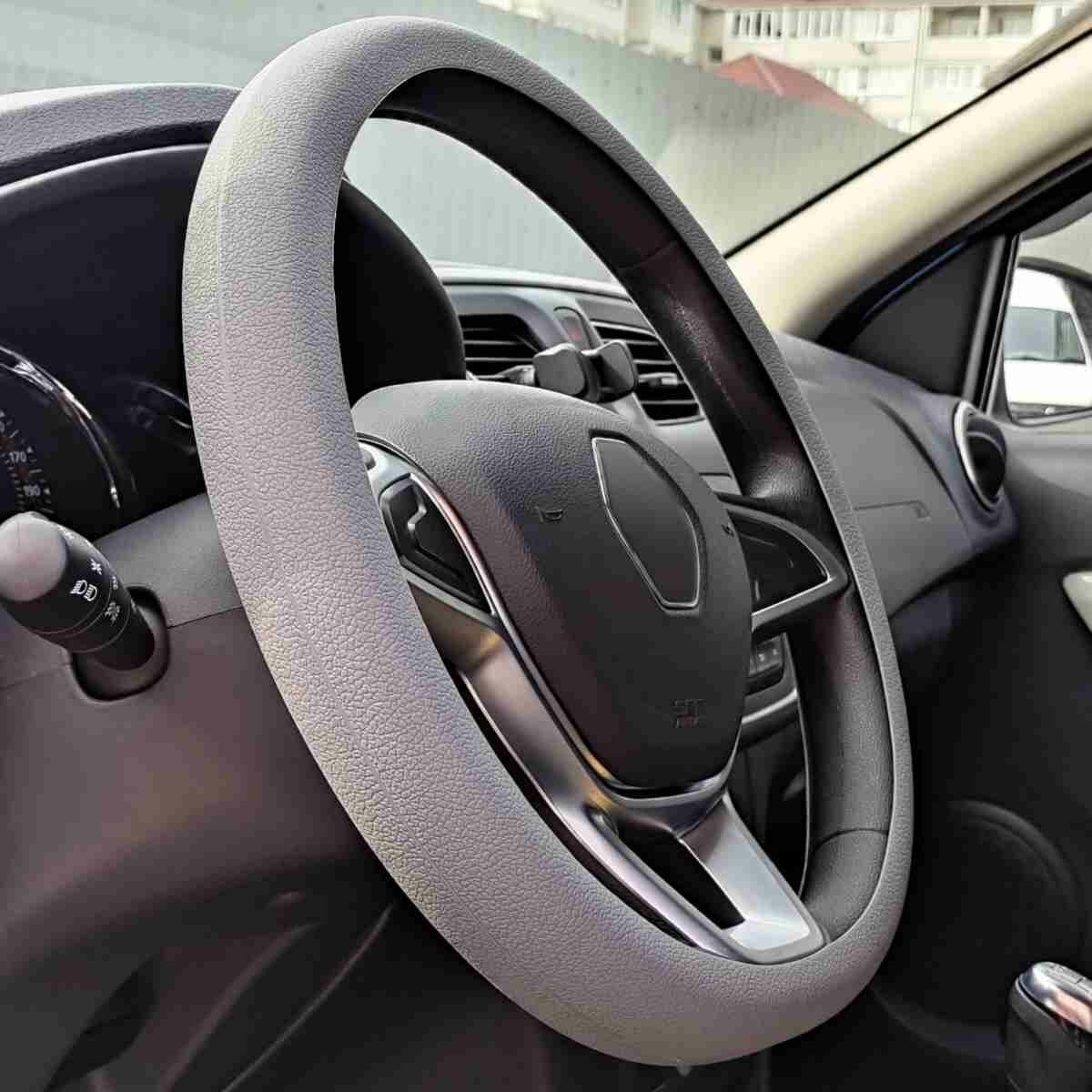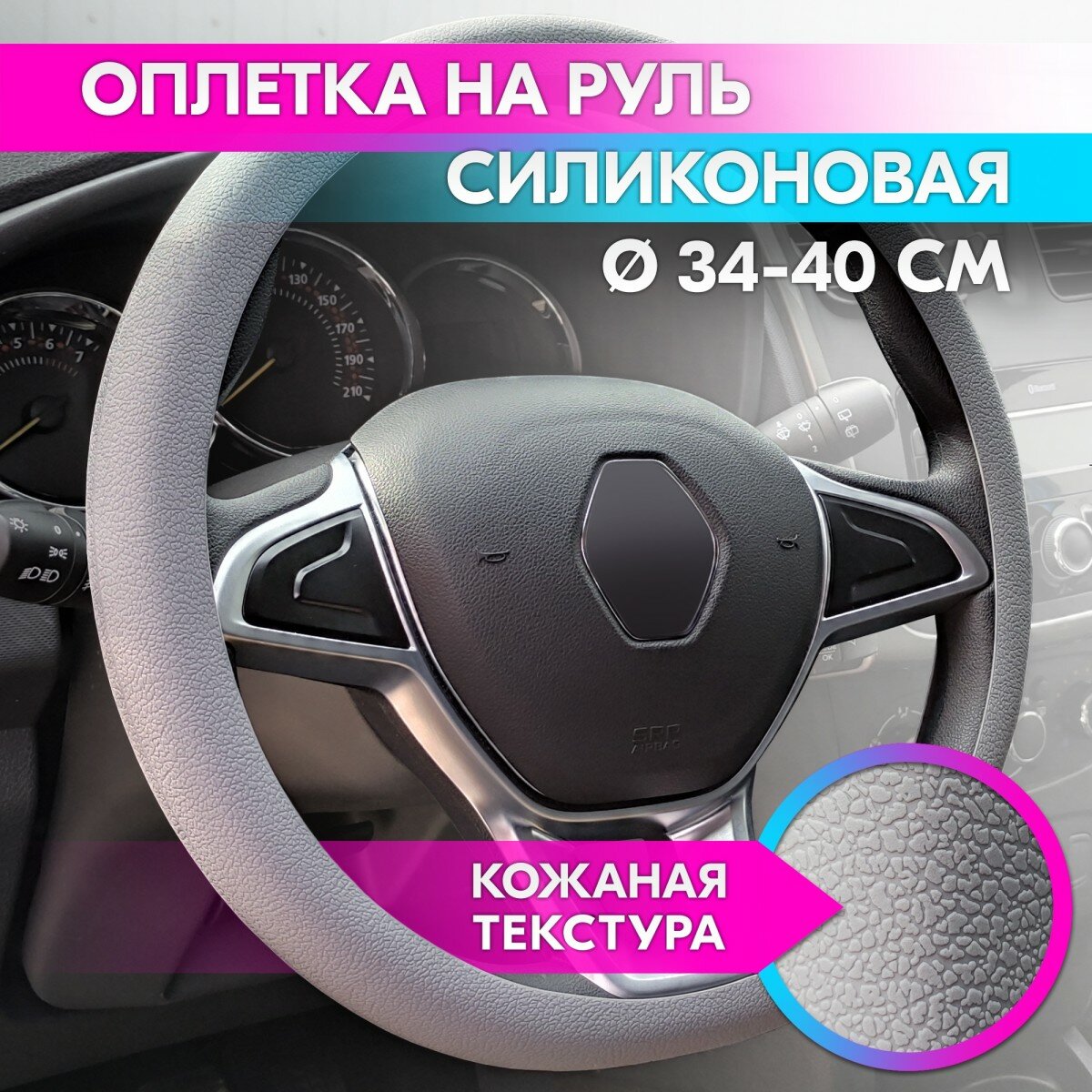 Отзывы на Оплетка на руль универсальная из силикона «Standard» 34-40 см (серая, кожаная текстура) belais #21777