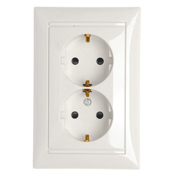 Двухместная розетка с заземлением и защитными шторками, белая литая Legrand Valena 774427 774427 . 1 543 ₽