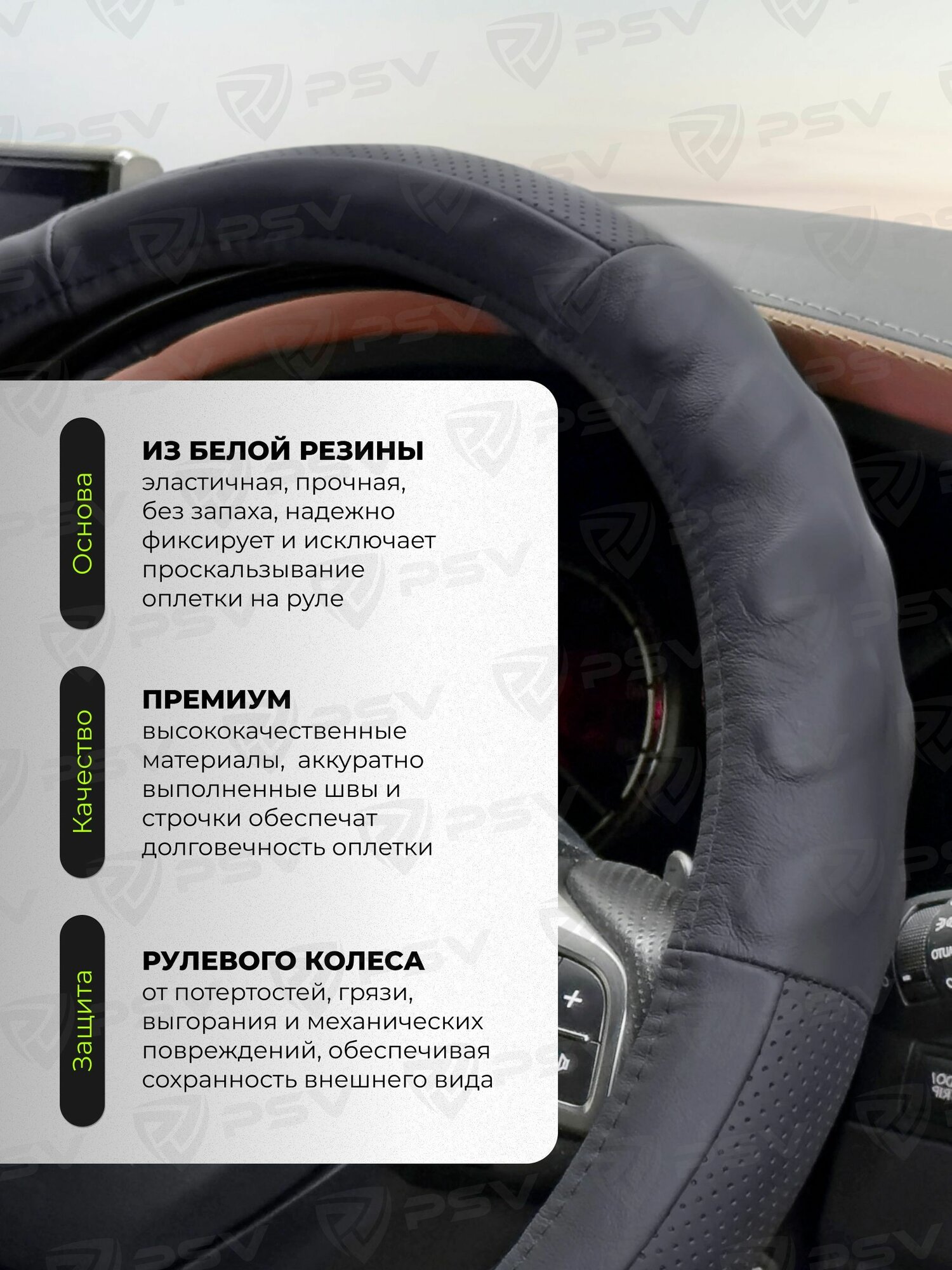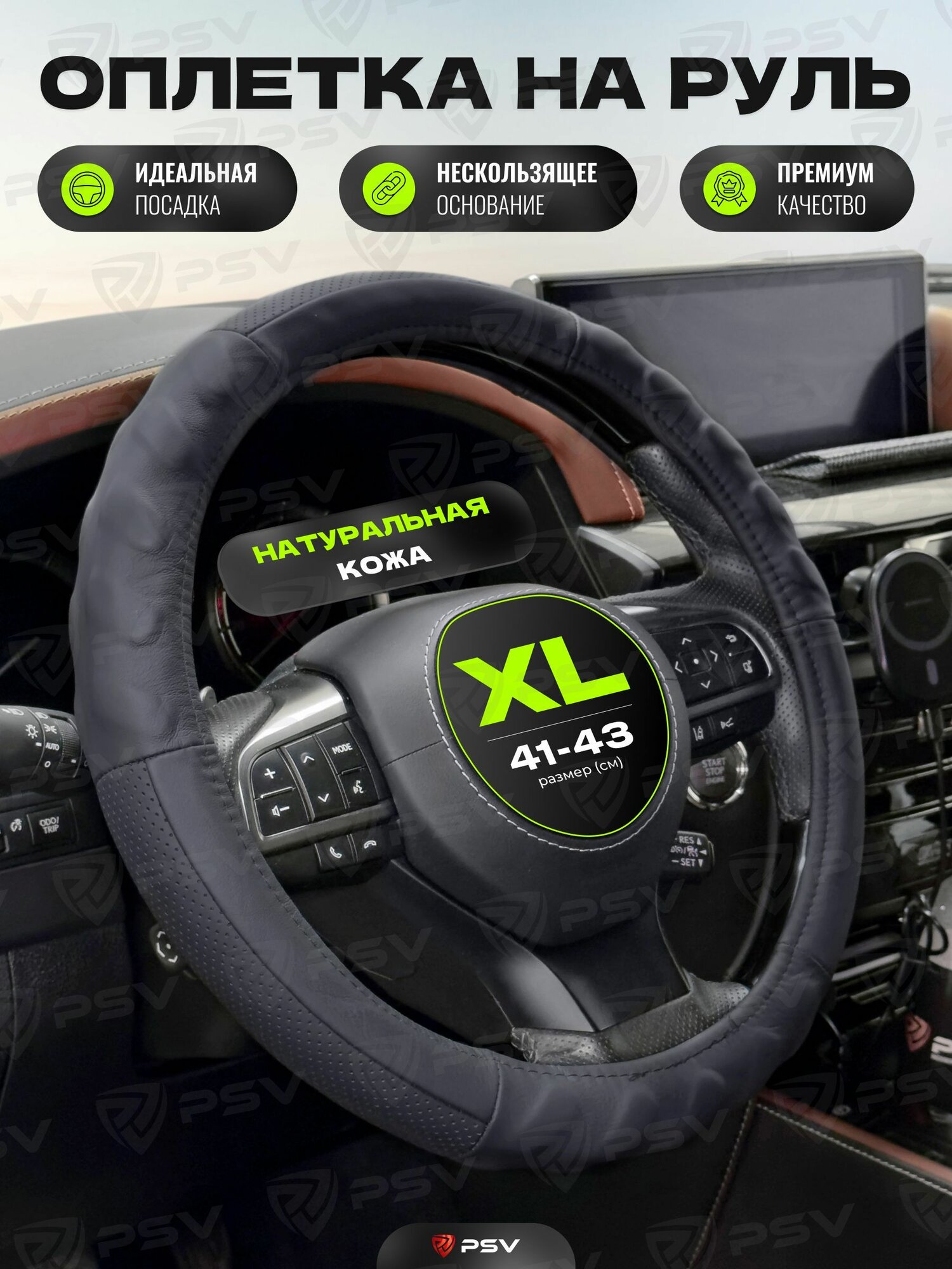 10 цен на Чехол на руль оплетка из натуральной кожи PSV BUMP (Черный), размер XL 41-43 см