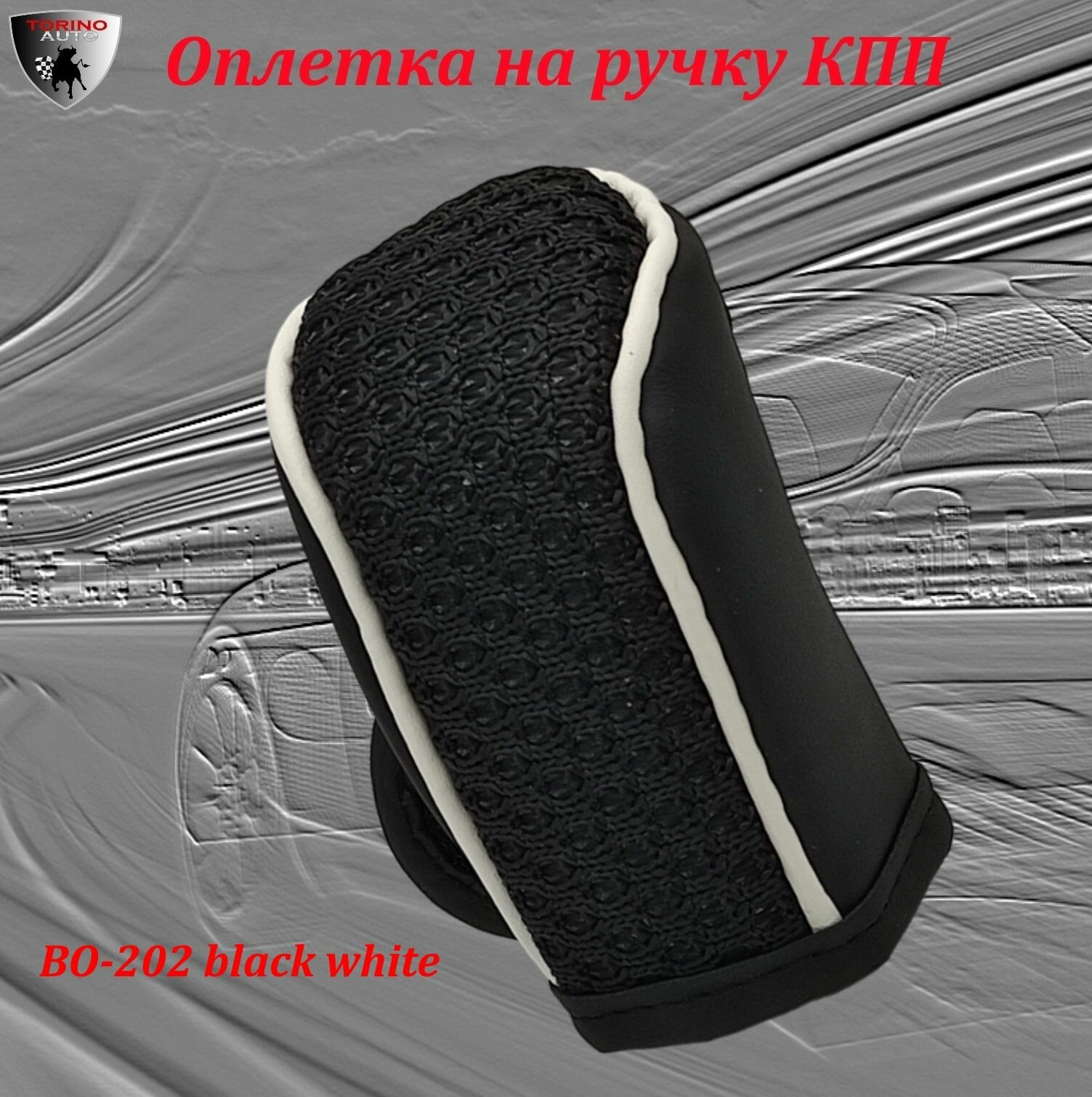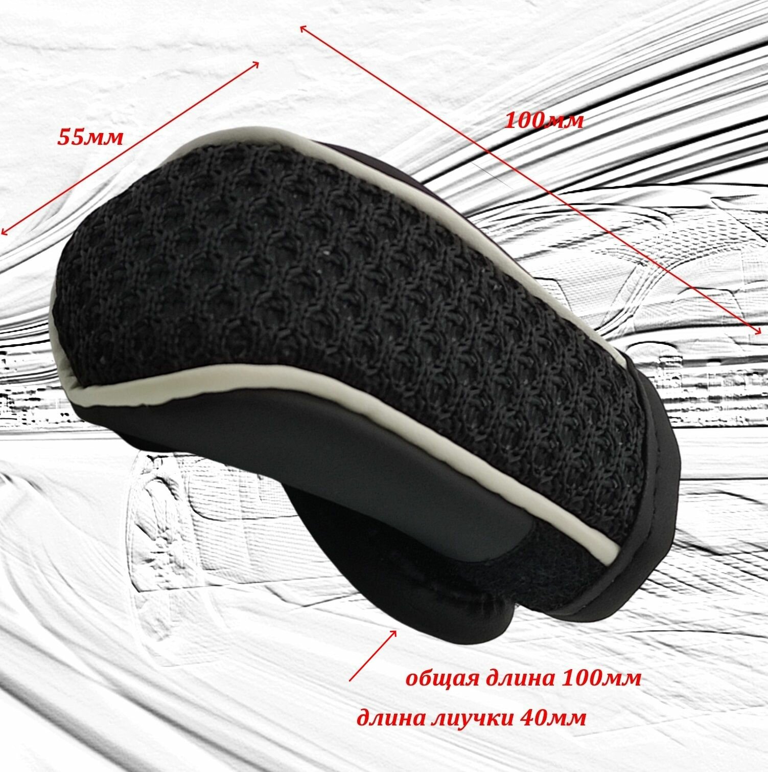Оплетка на ручку КПП из эко-кожи, чехол на рычаг КПП для салона автомобиля, черная С белым информация: